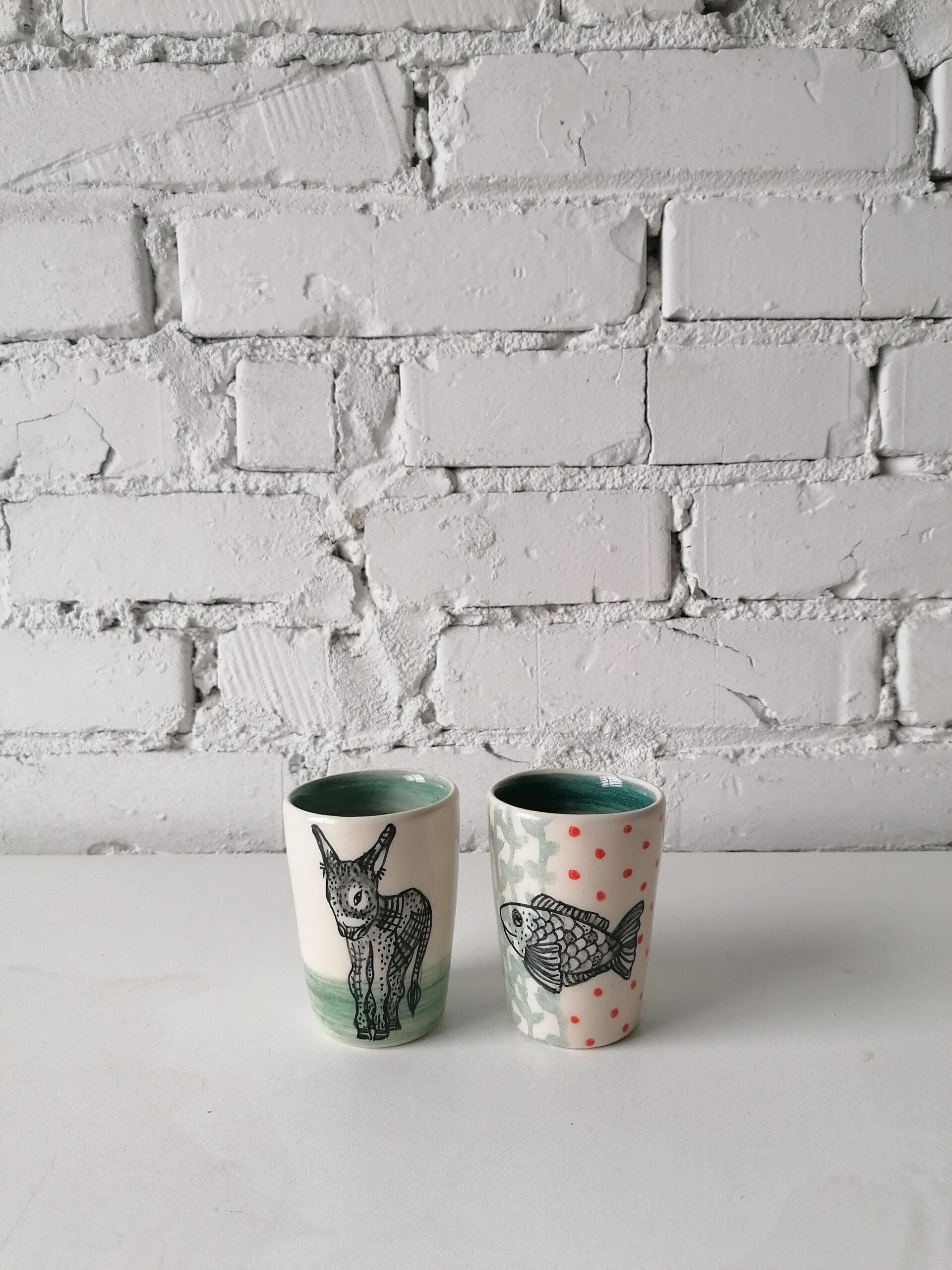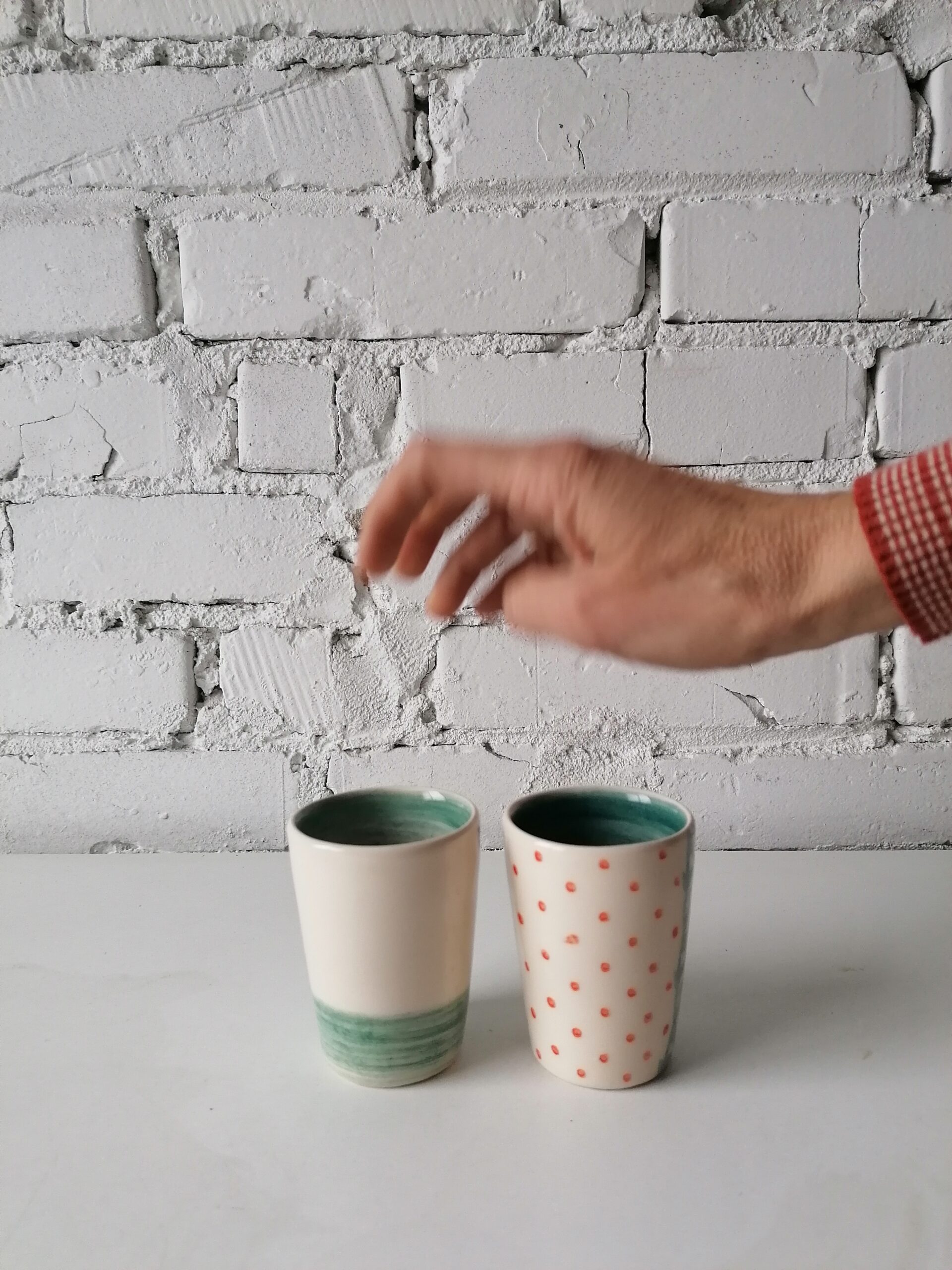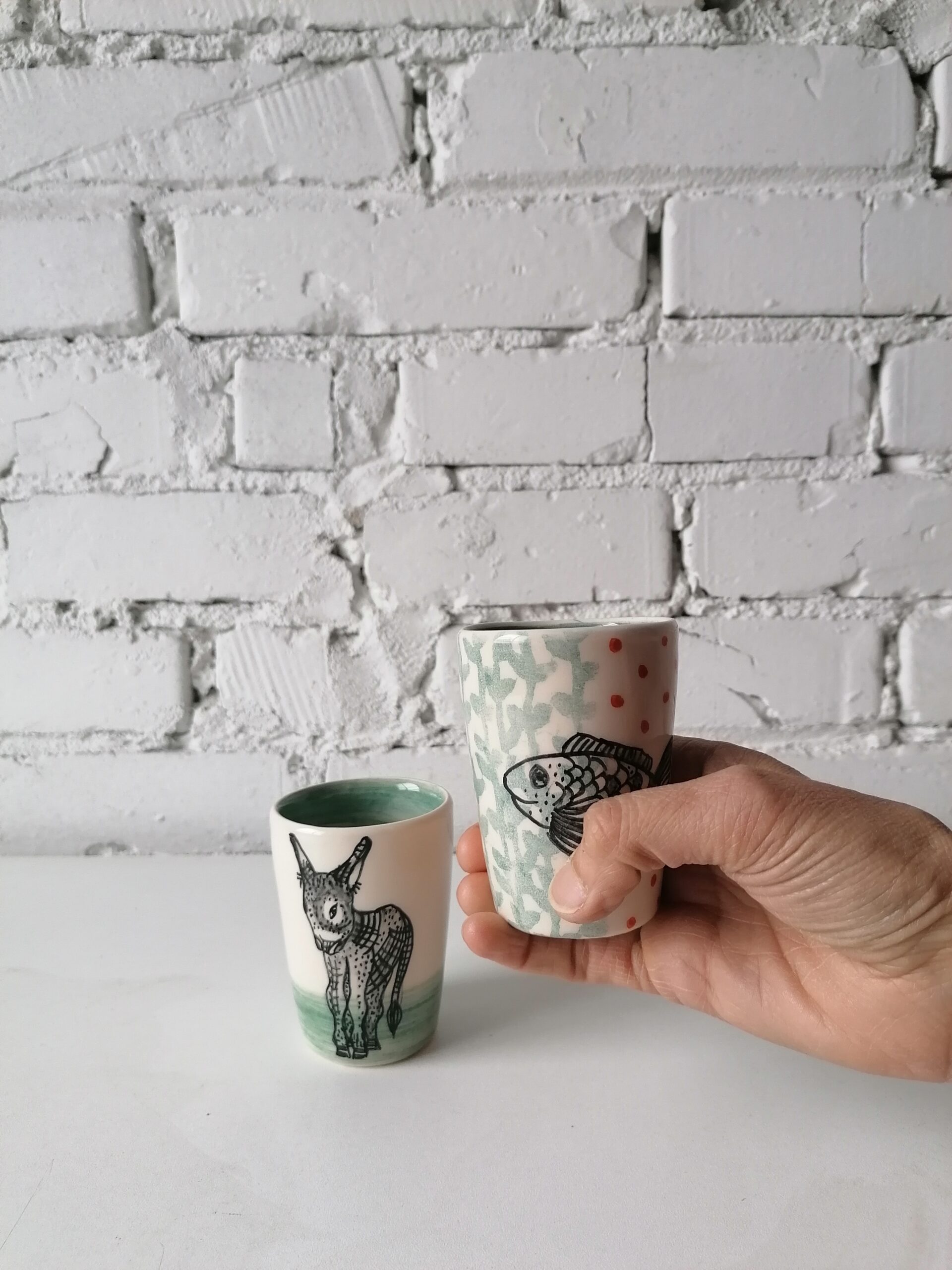 • Bicchierino in ceramica realizzata e decorata a mano, in argilla bianca