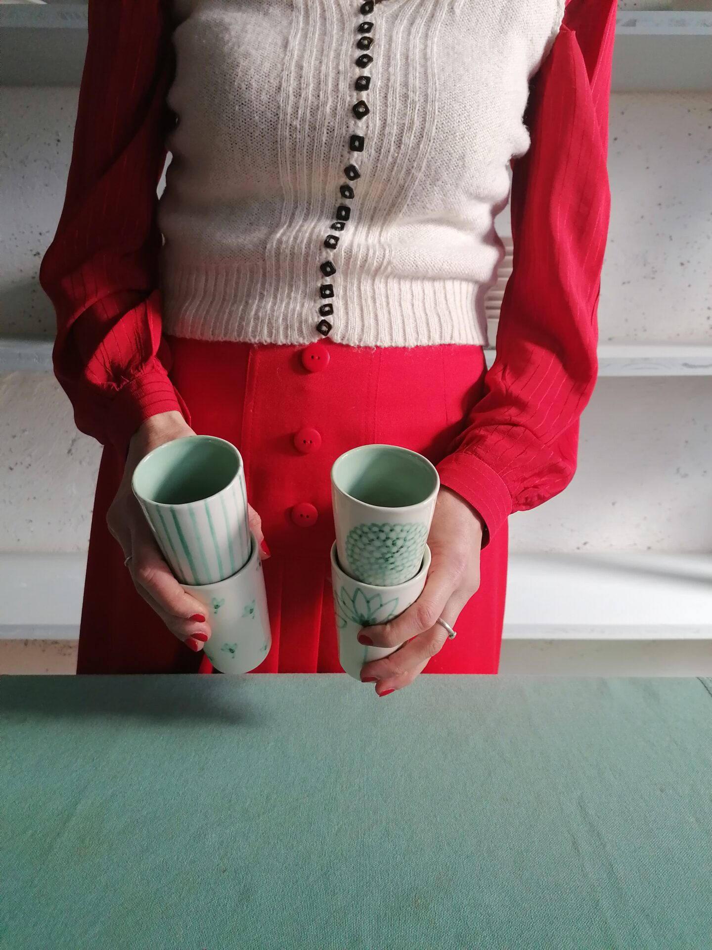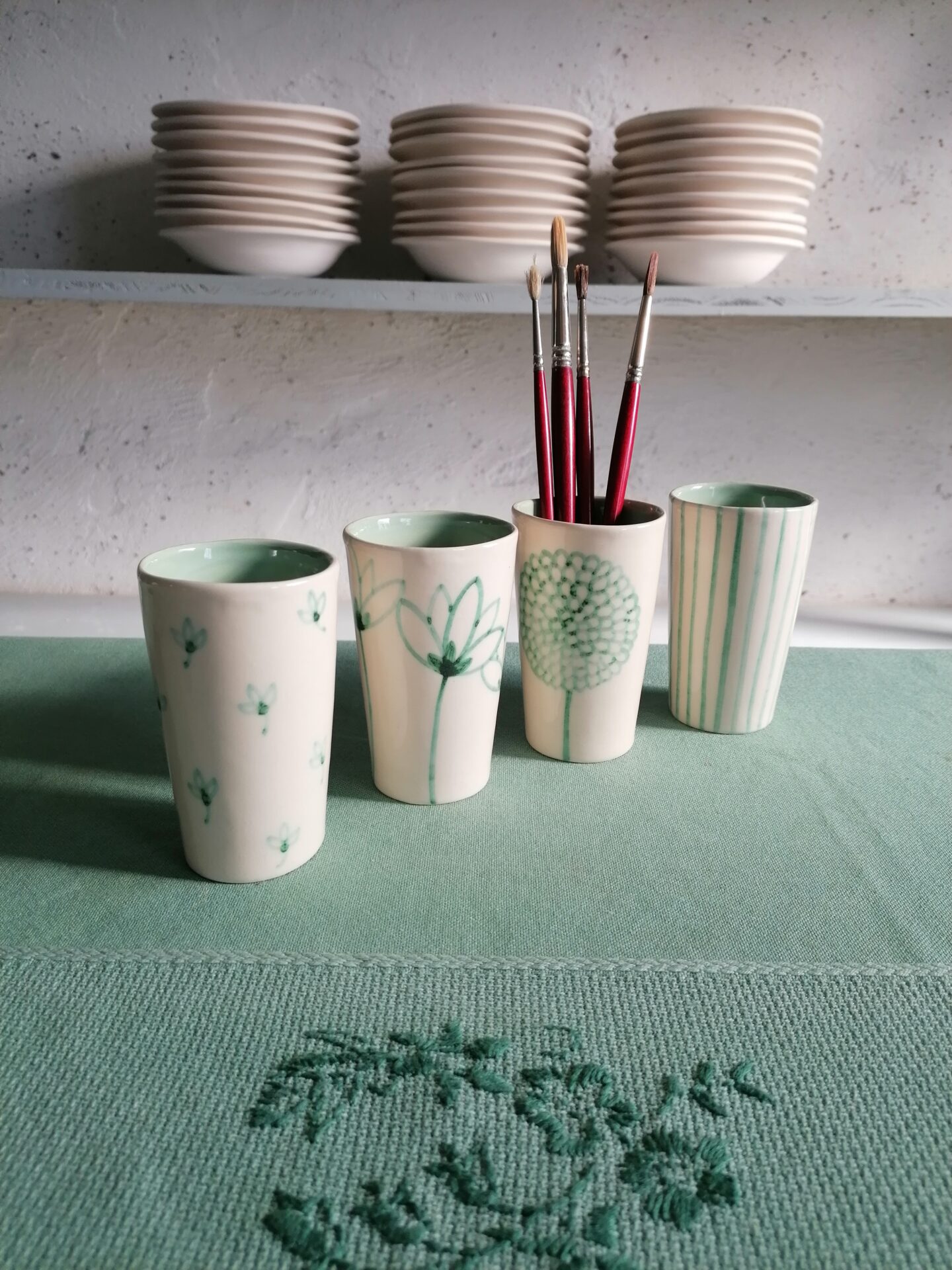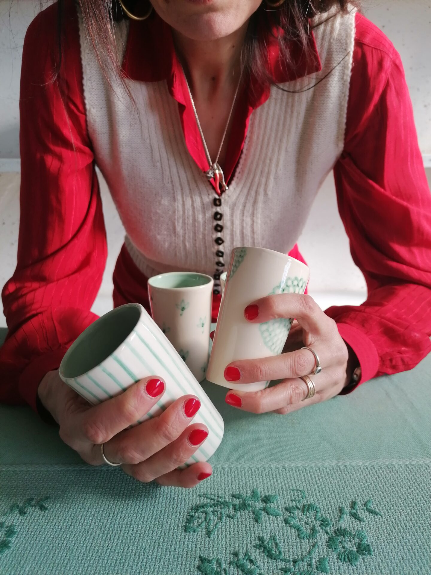 Set di bicchierini multiuso interamente prodotto e decorato a mano.