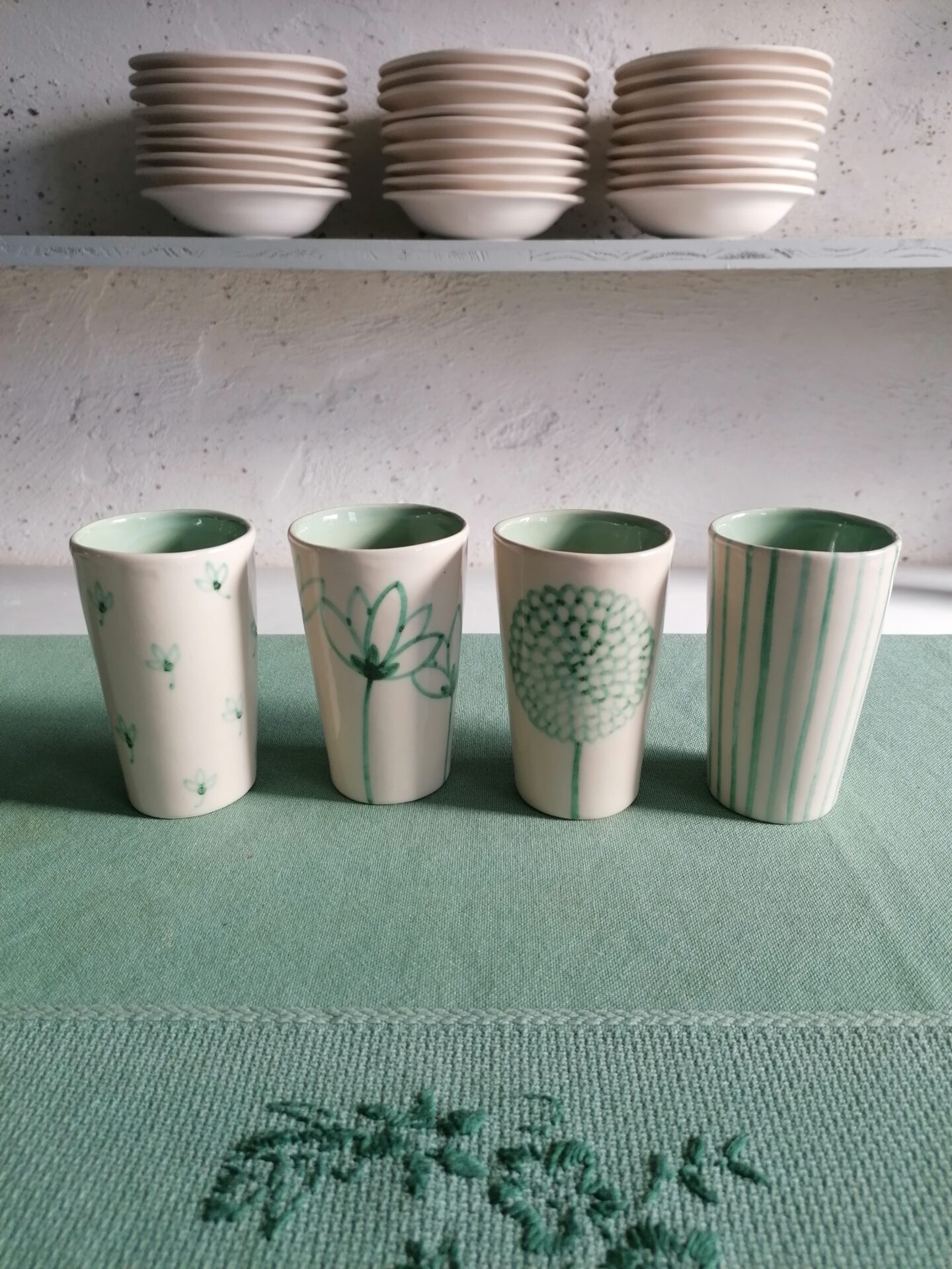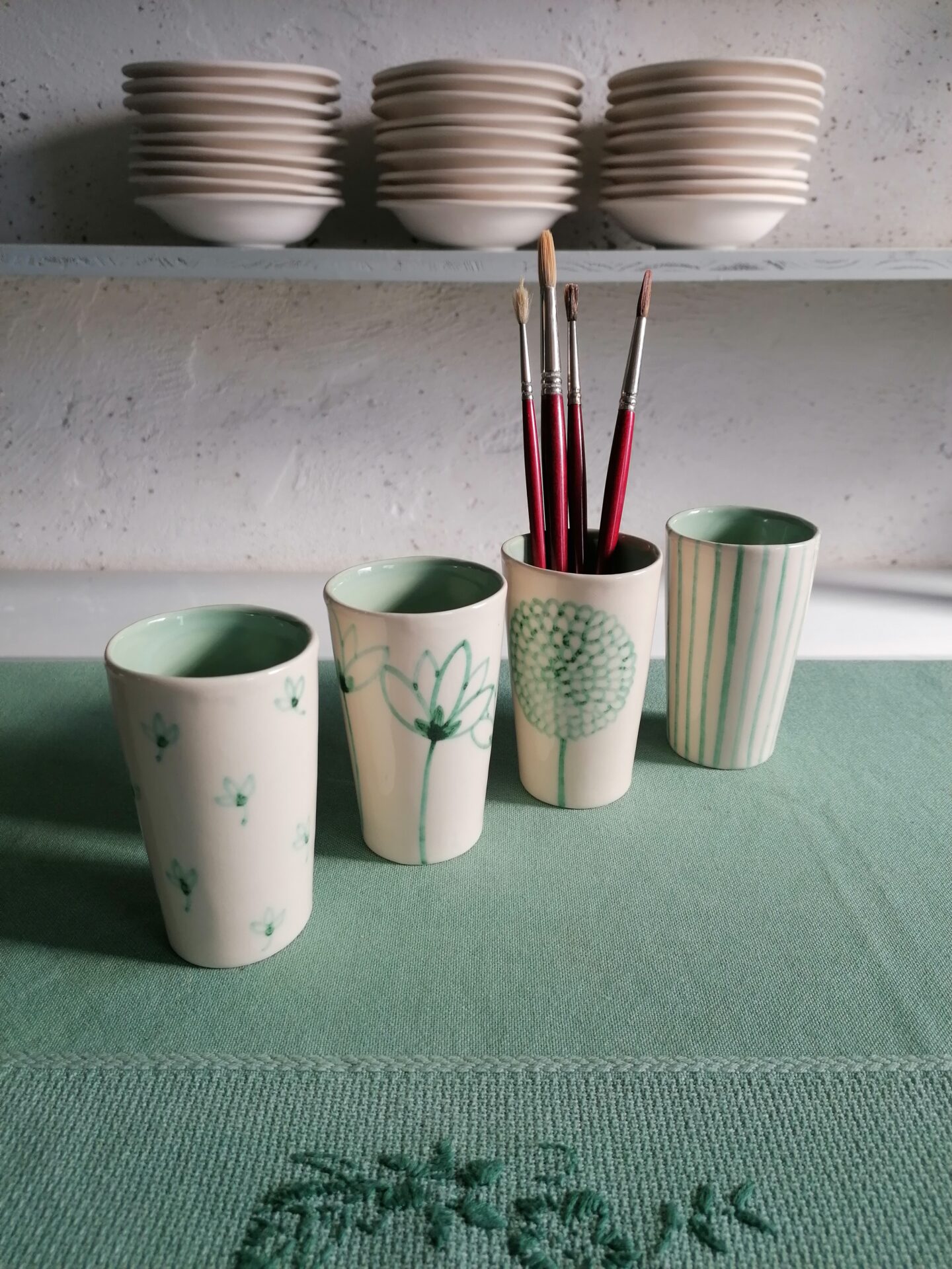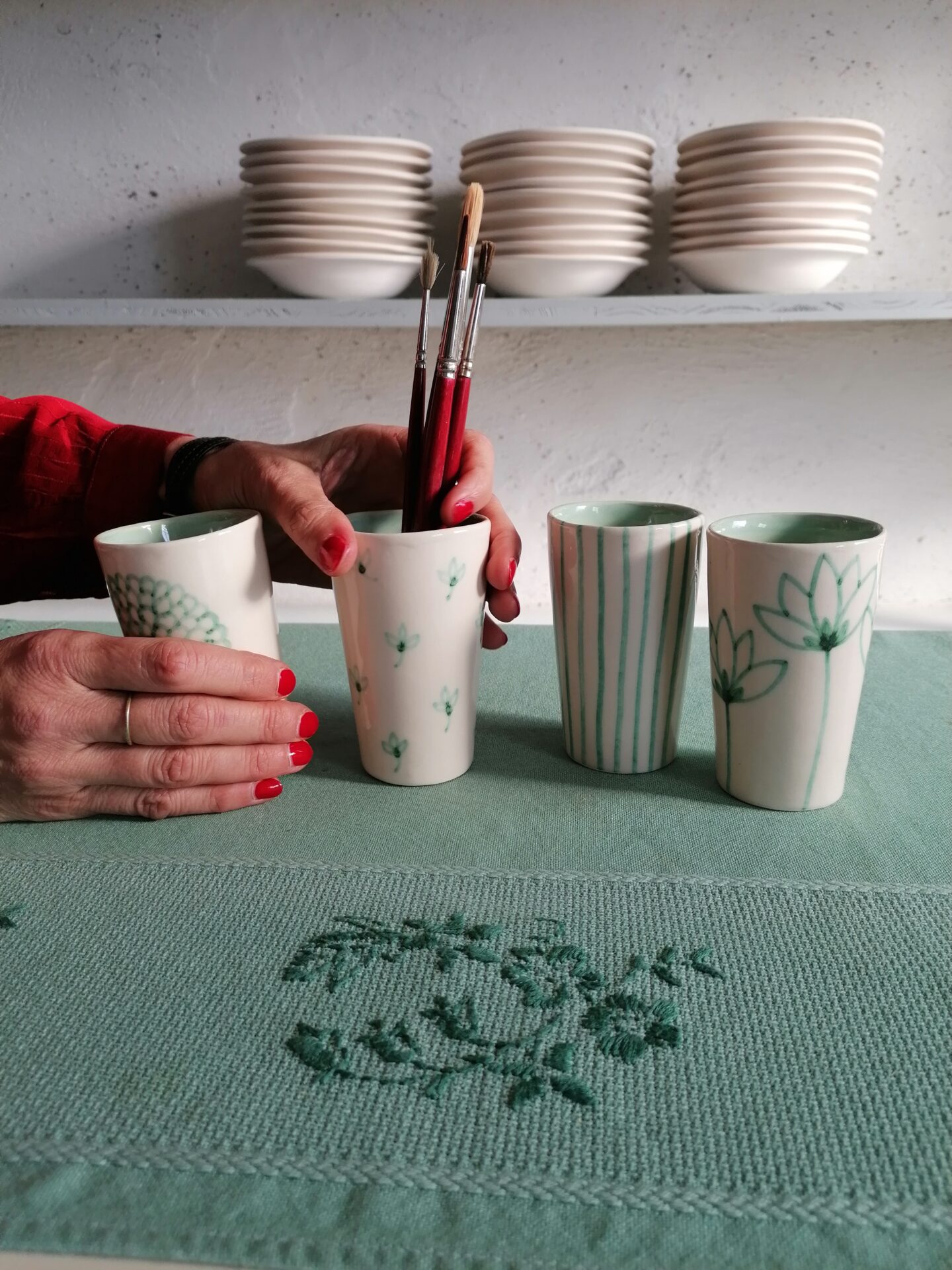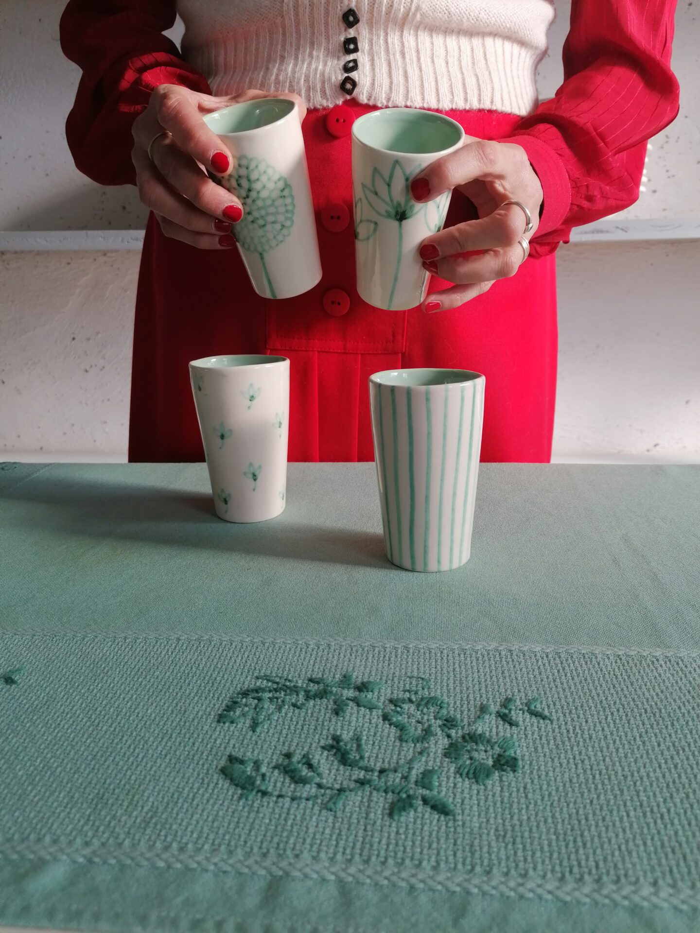 Set di bicchierini multiuso interamente prodotto e decorato a mano.