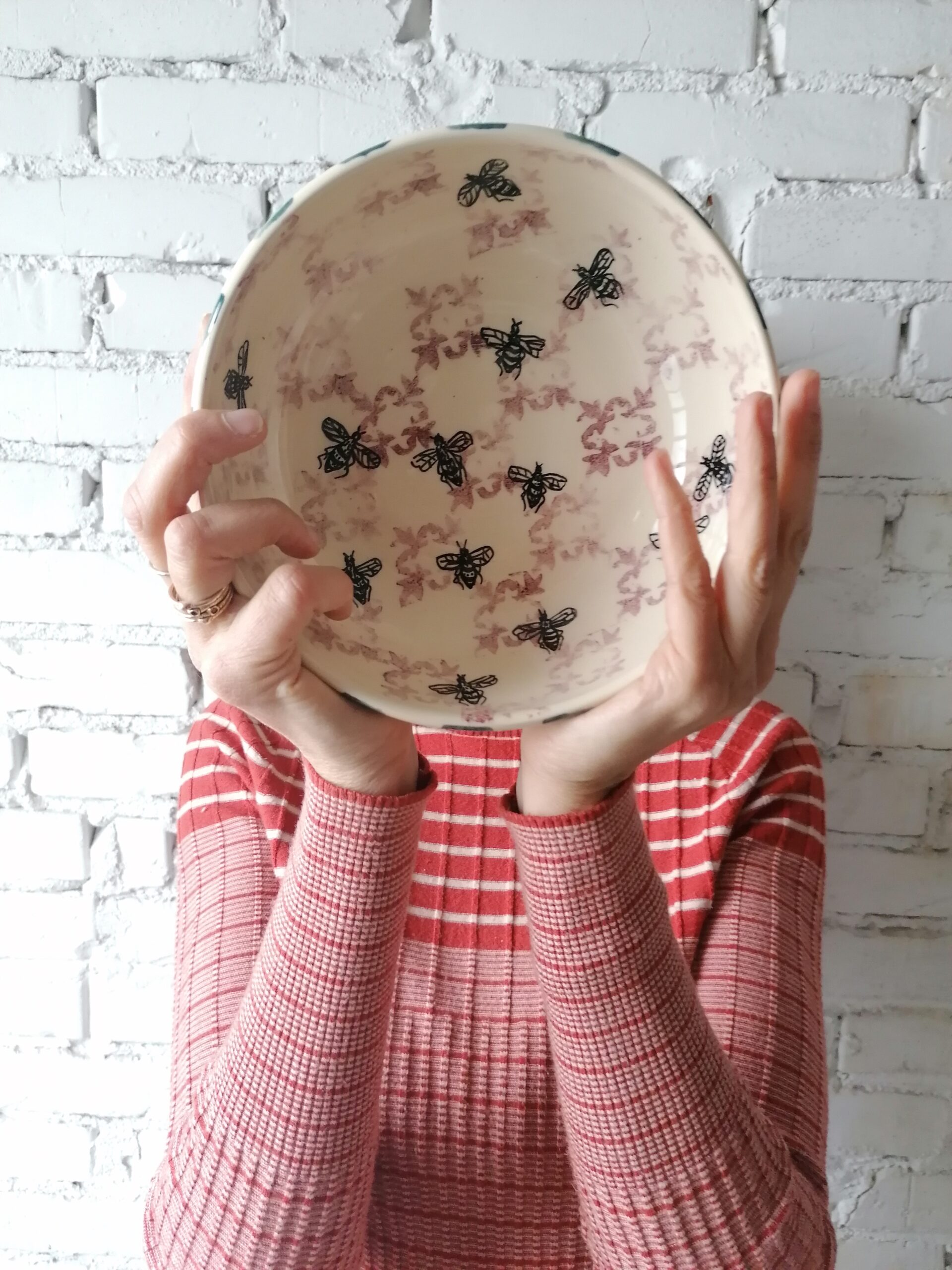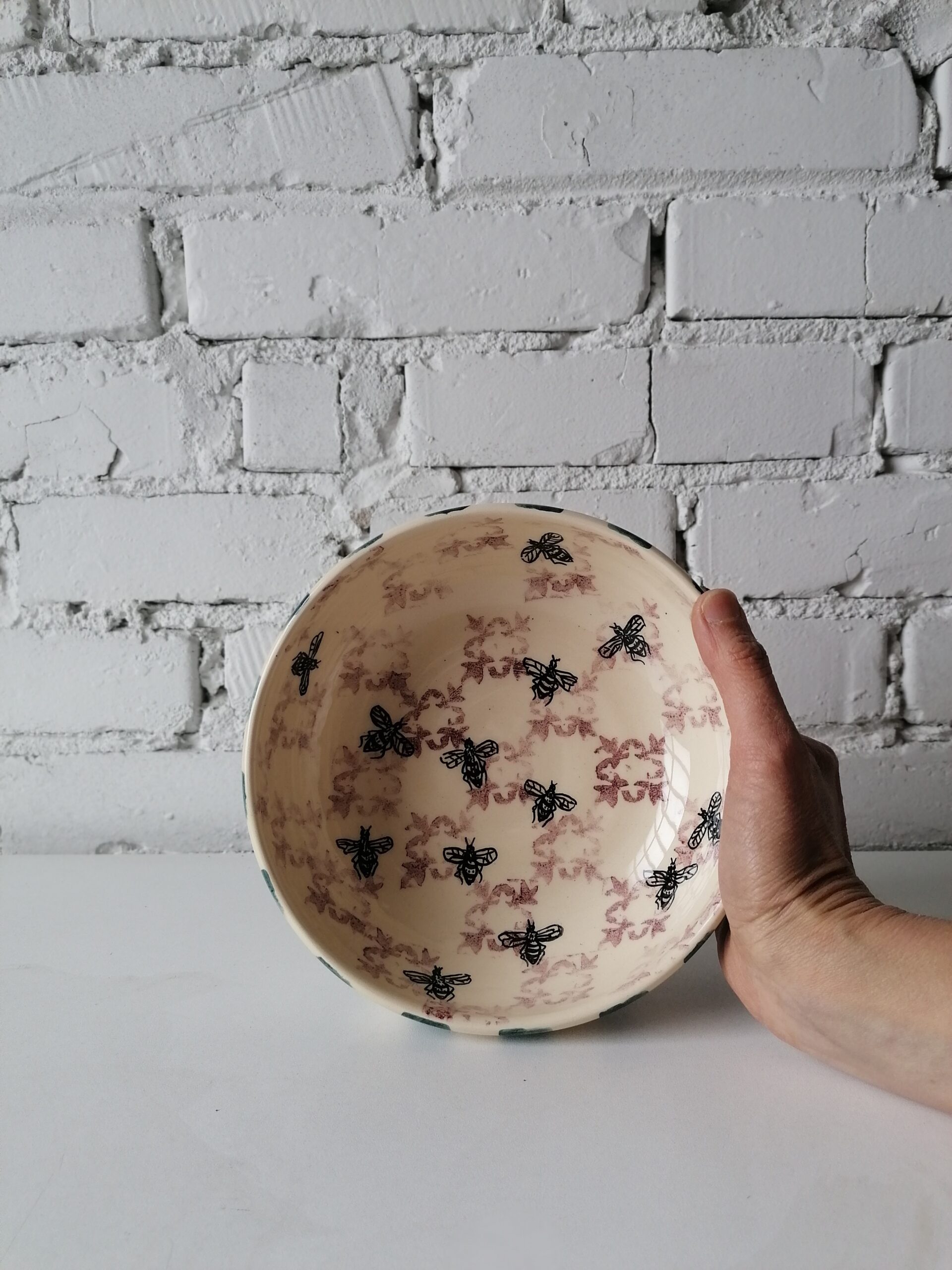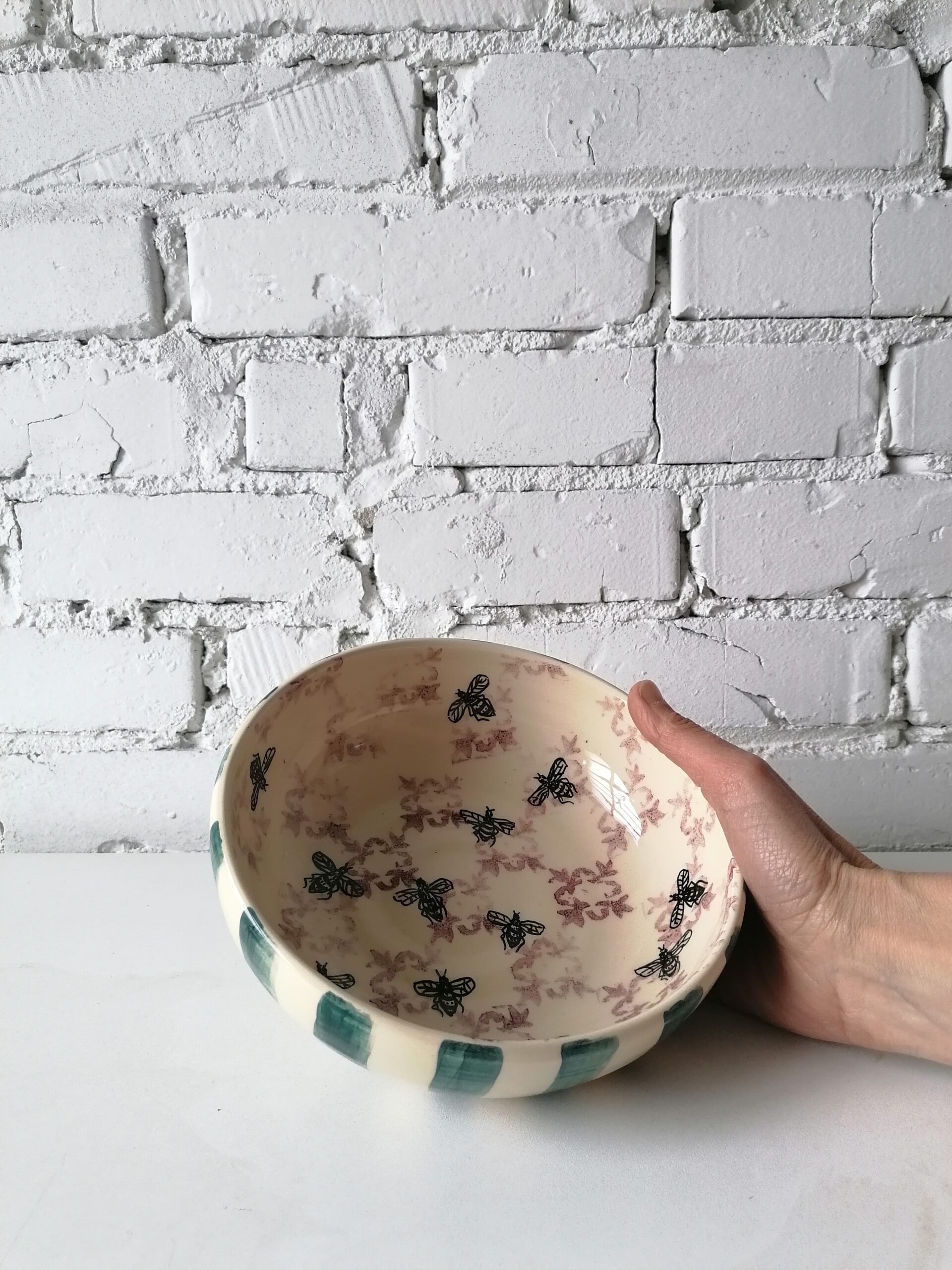 • Ciotola in ceramica realizzata e decorata a mano, in argilla bianca