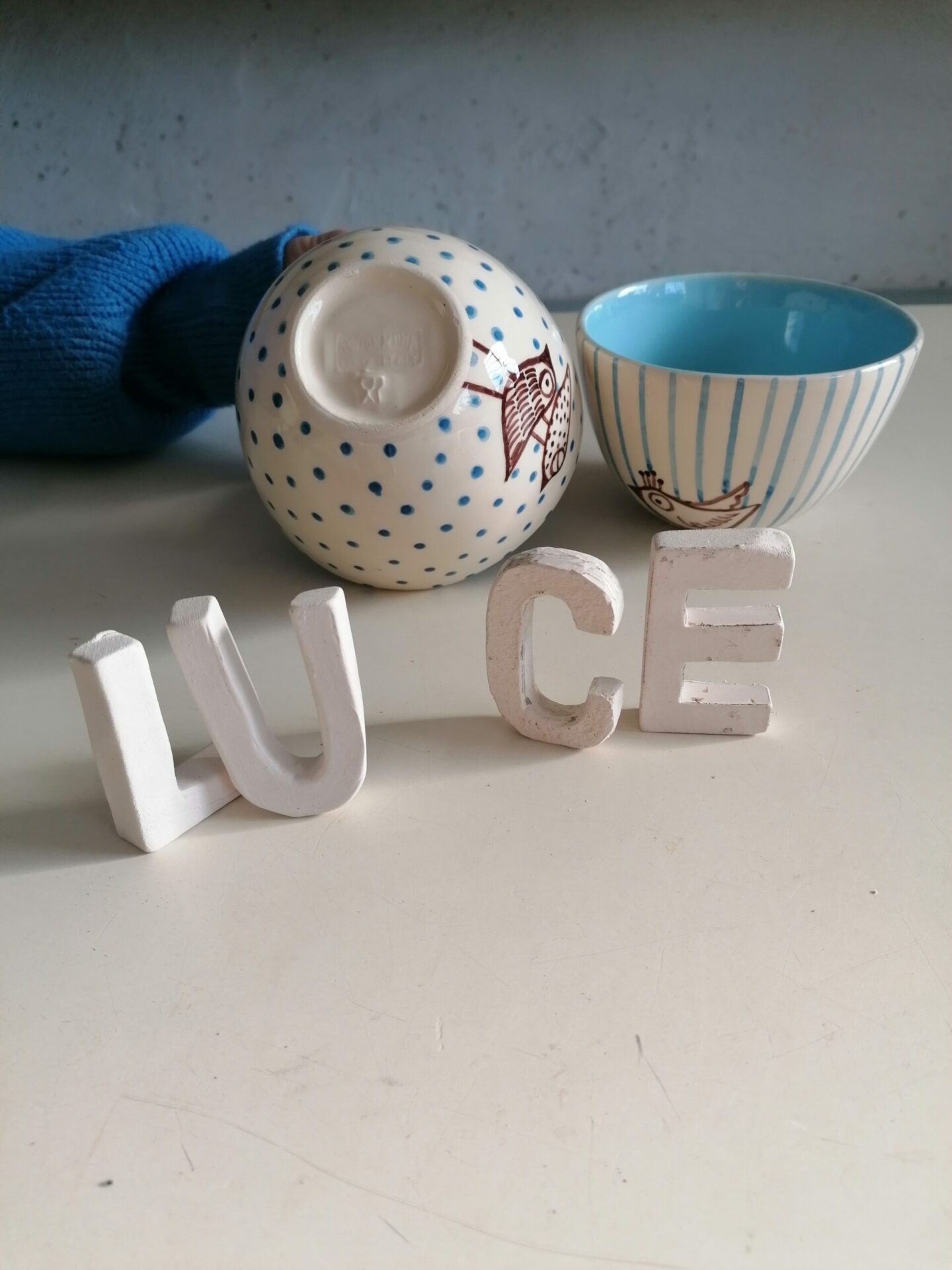 • Ciotolina in ceramica realizzata e decorata a mano, in argilla bianca