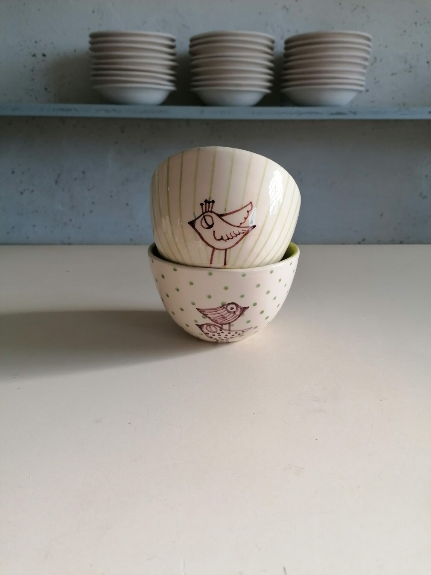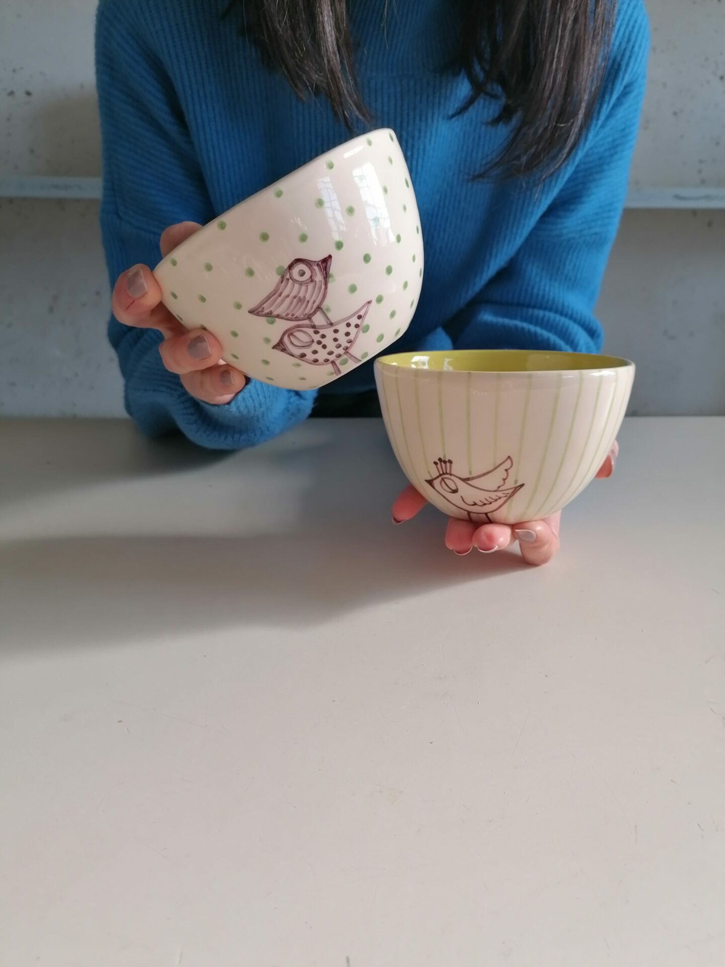 • Ciotolina in ceramica realizzata e decorata a mano, in argilla bianca