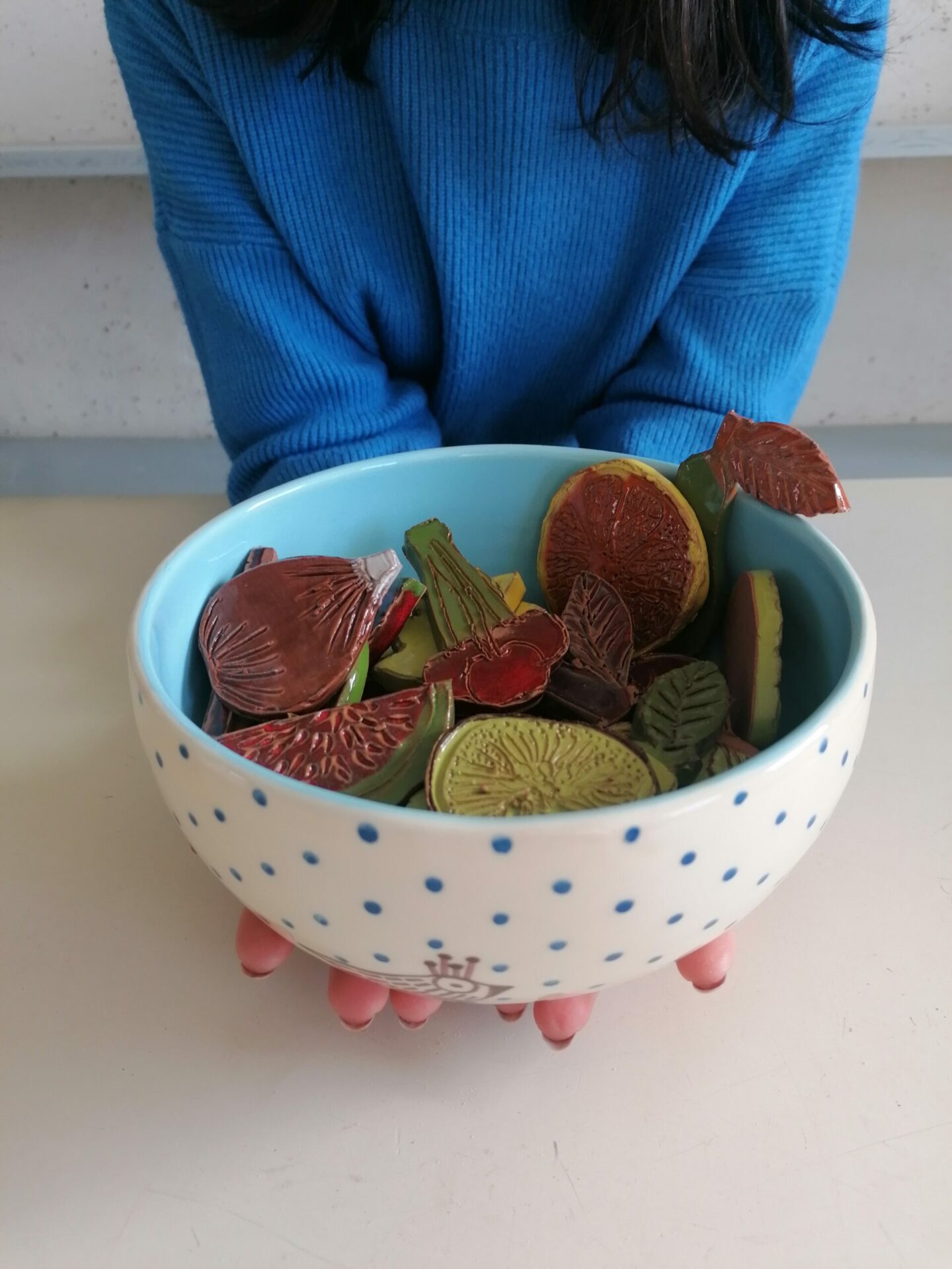 • Ciotola in ceramica realizzata e decorata a mano, in argilla bianca