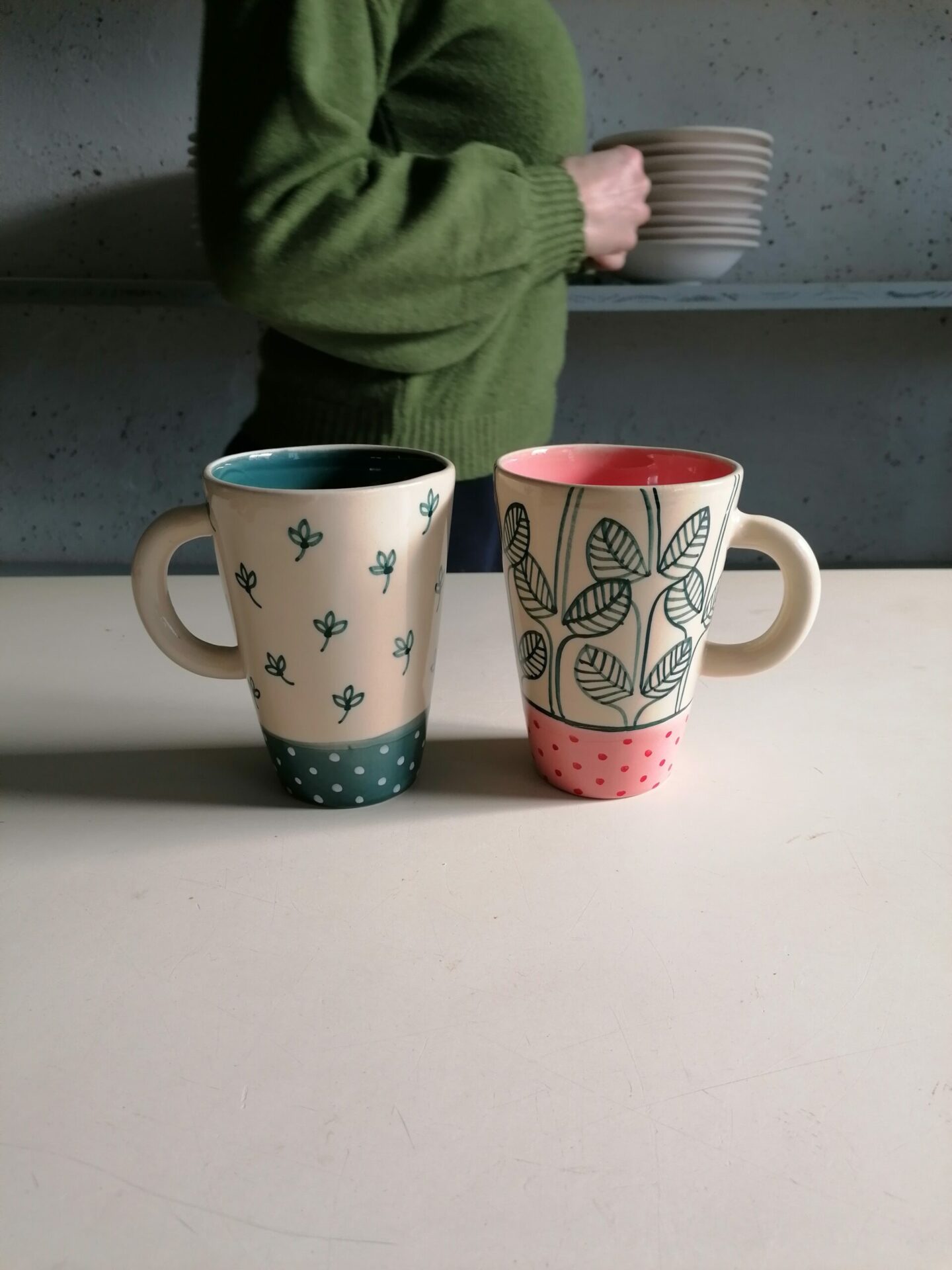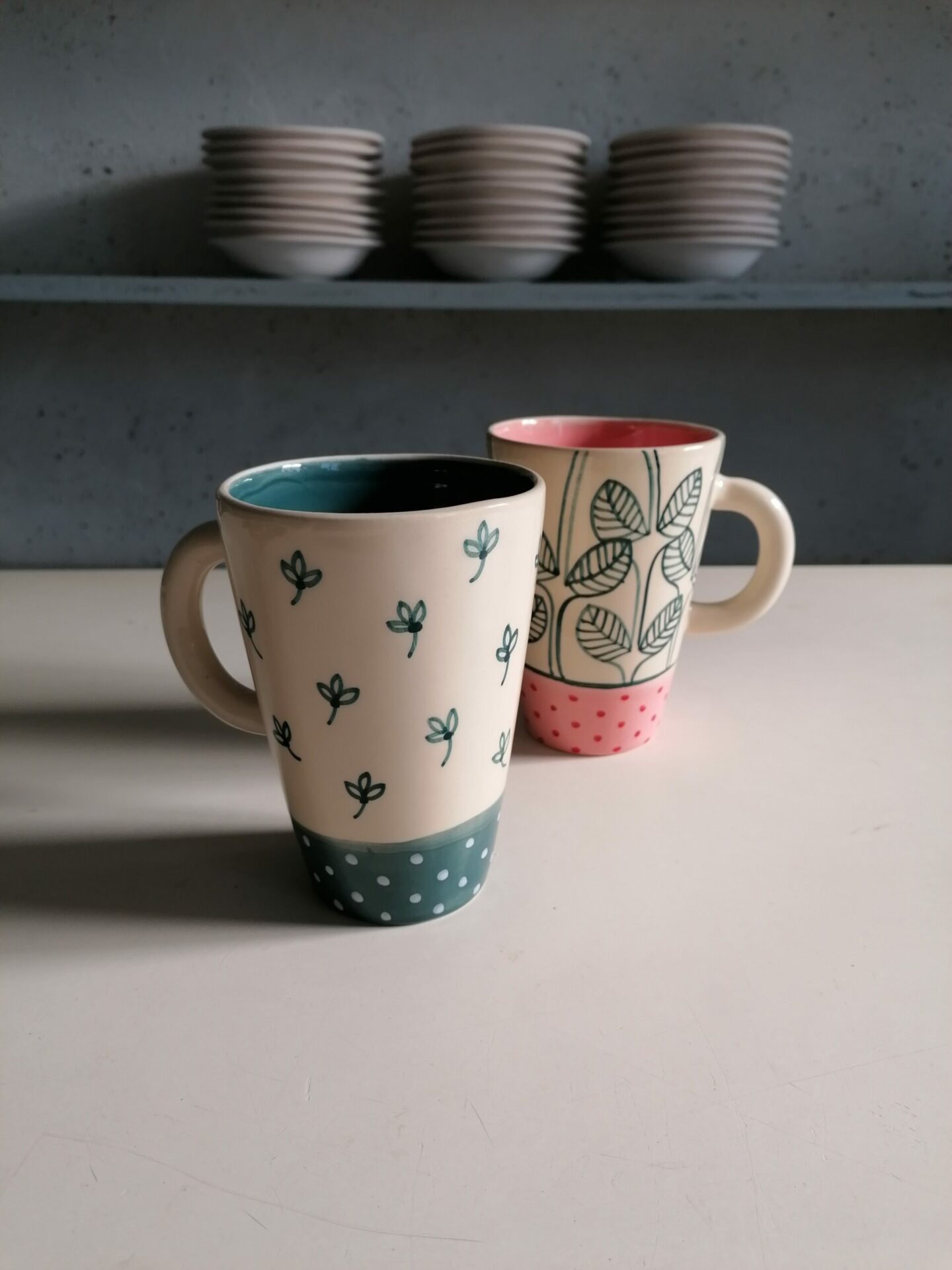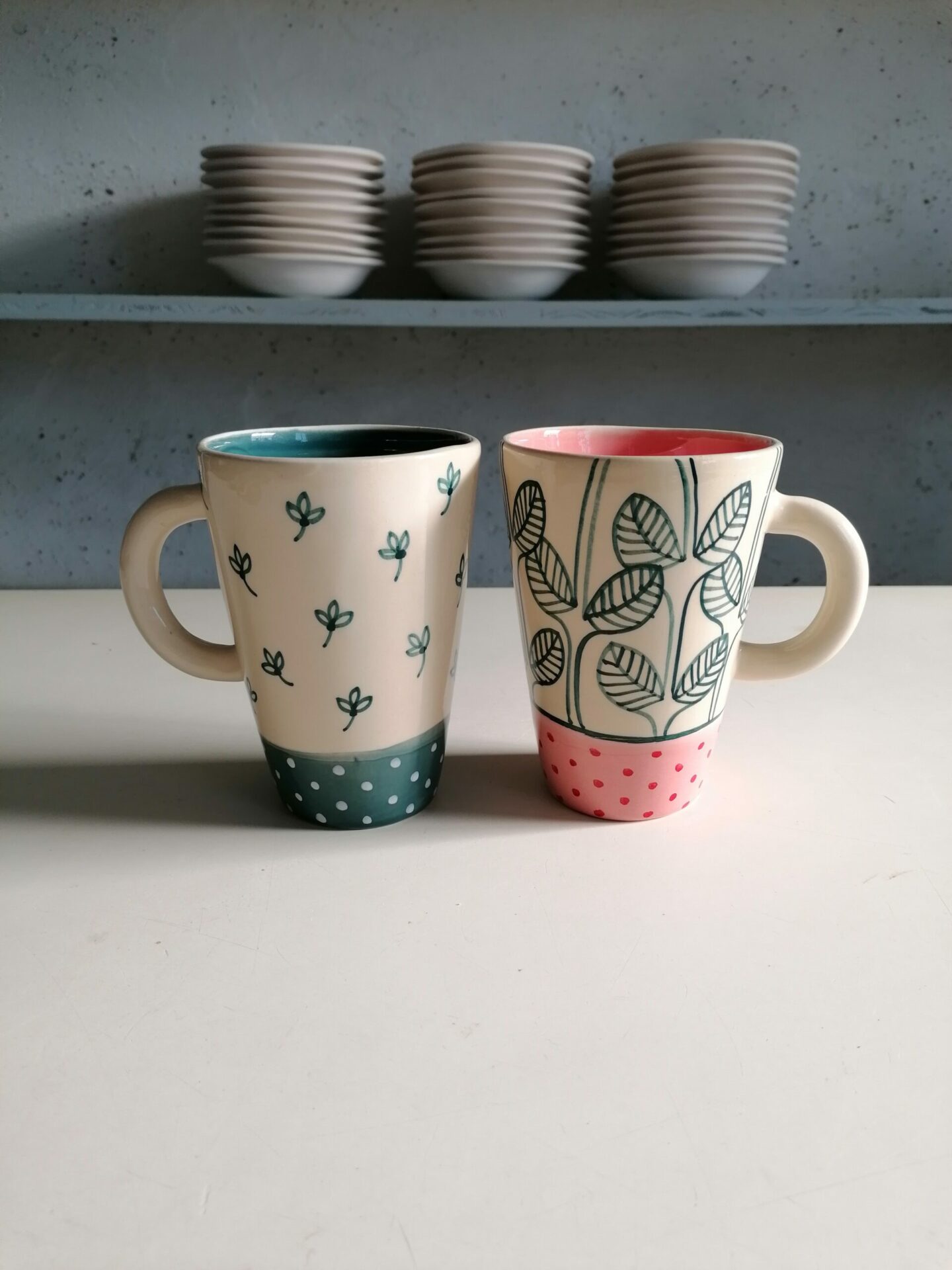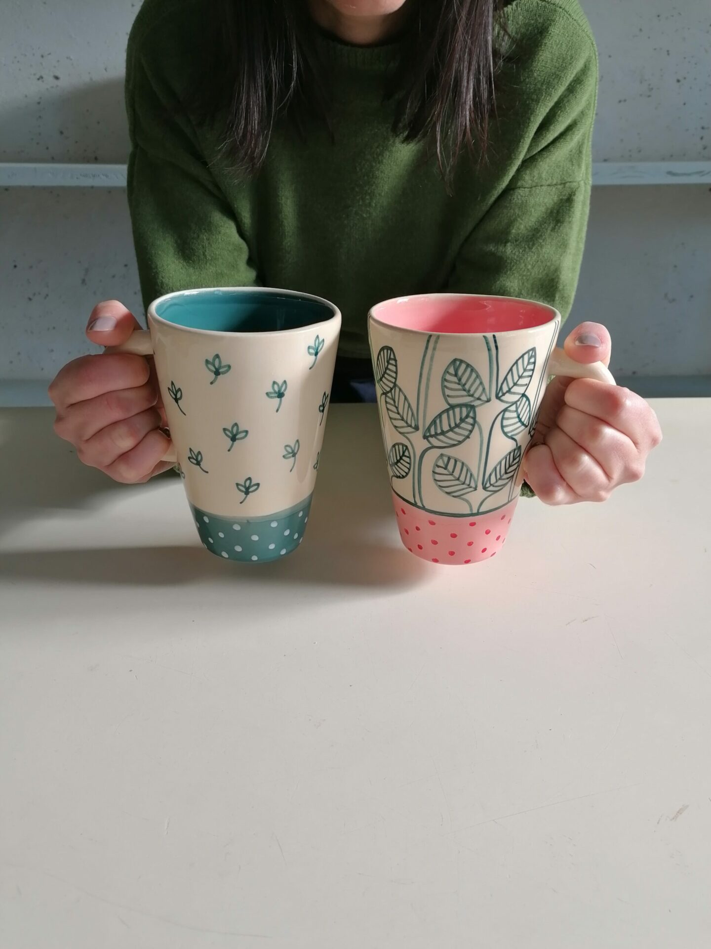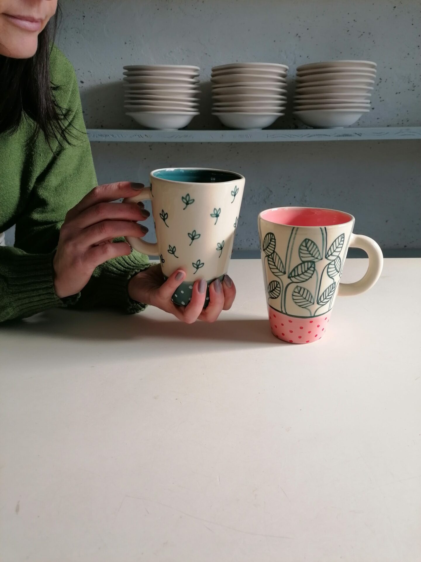 • Tazza in ceramica realizzata e decorata a mano, in argilla bianca