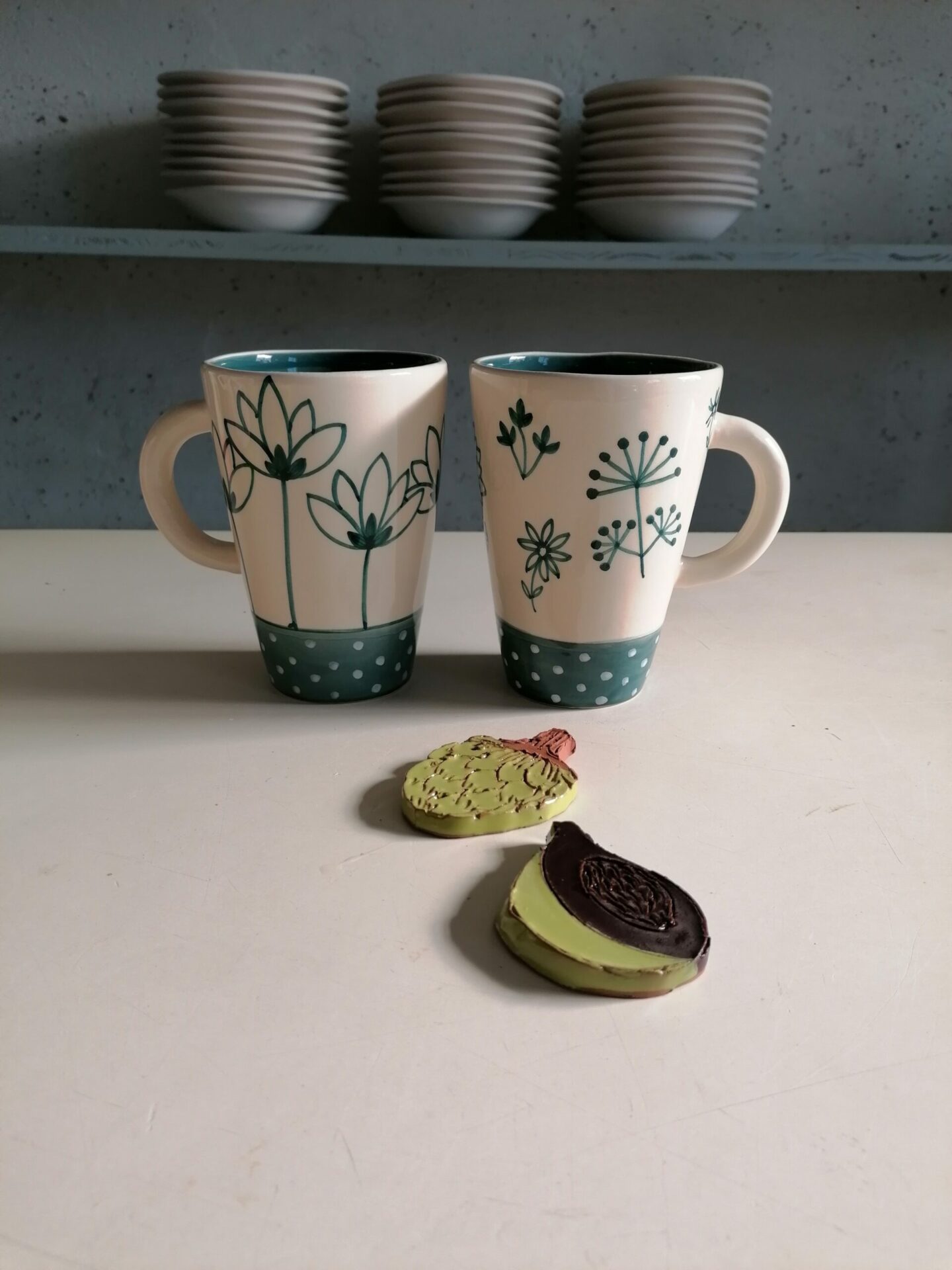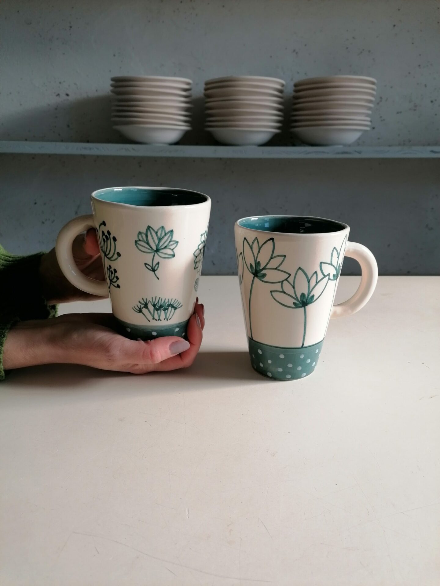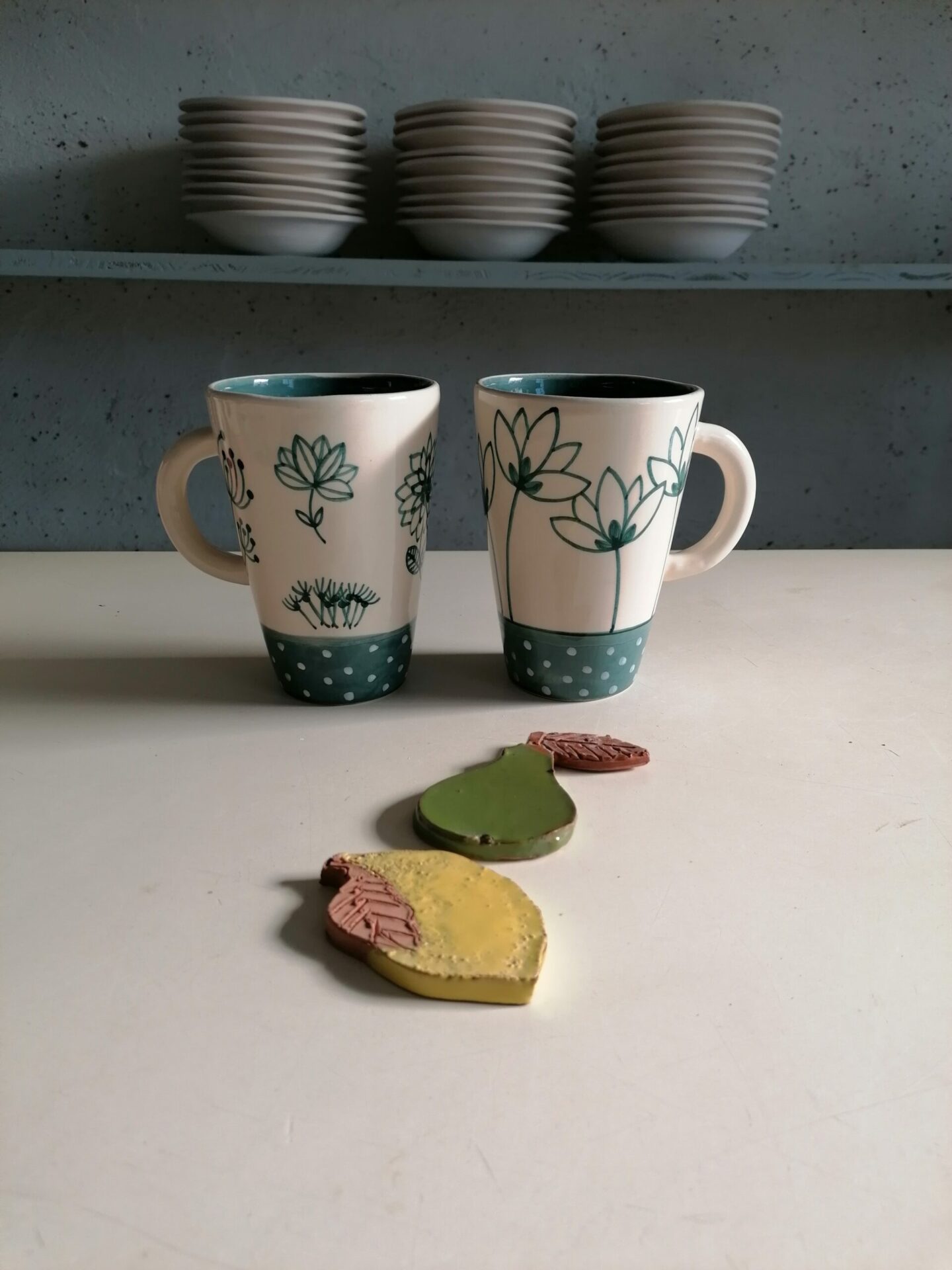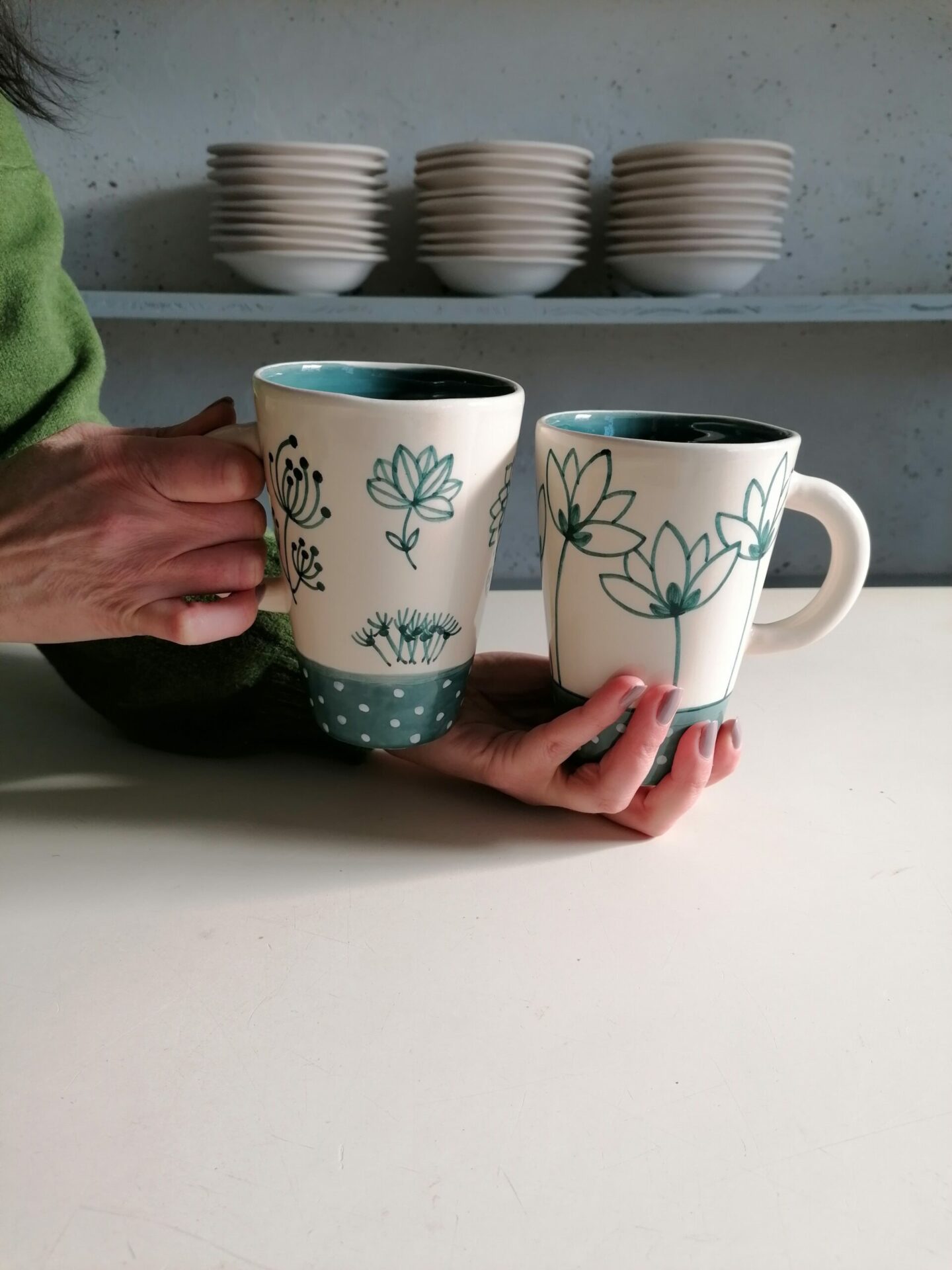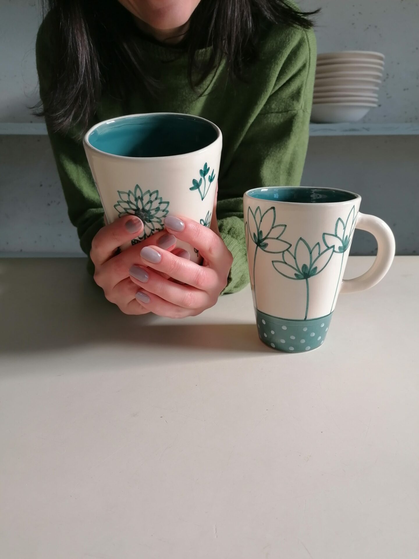 Tazza ideale per colazione interamente prodotta e decorata a mano.