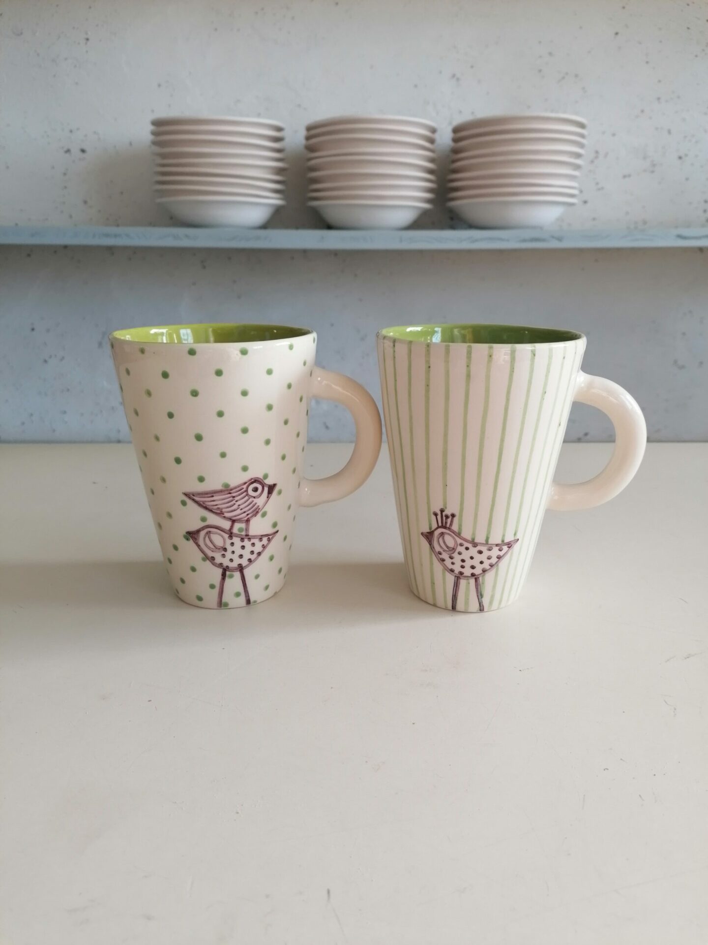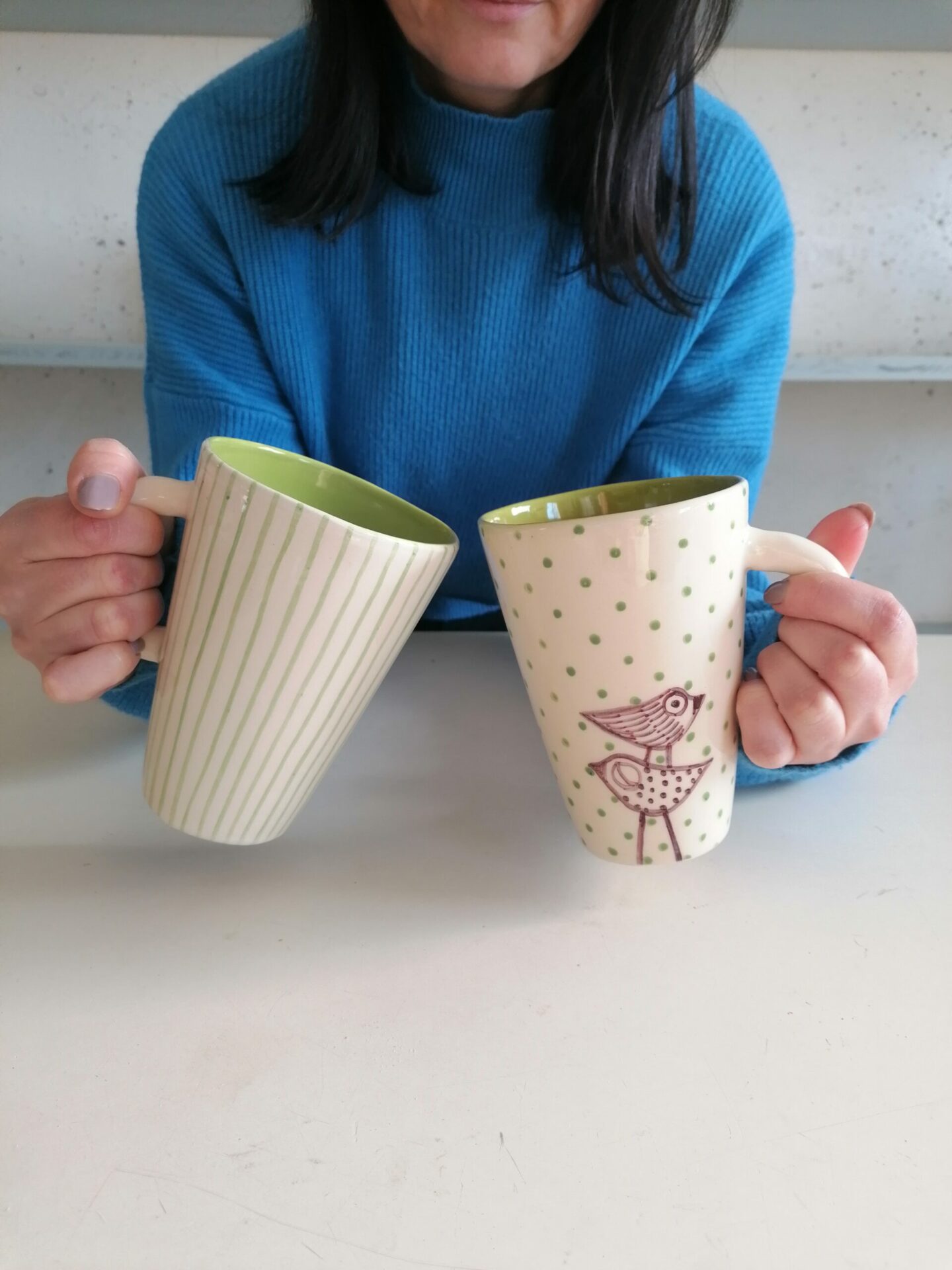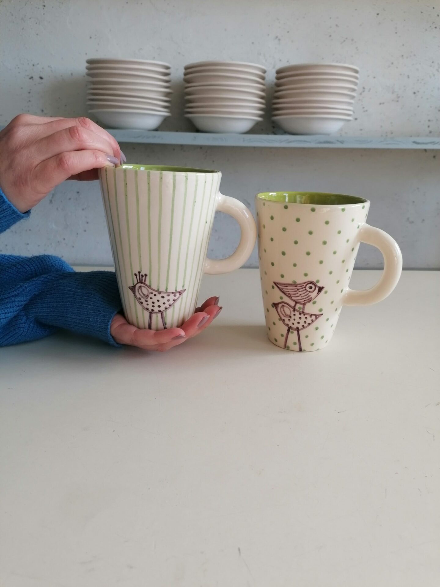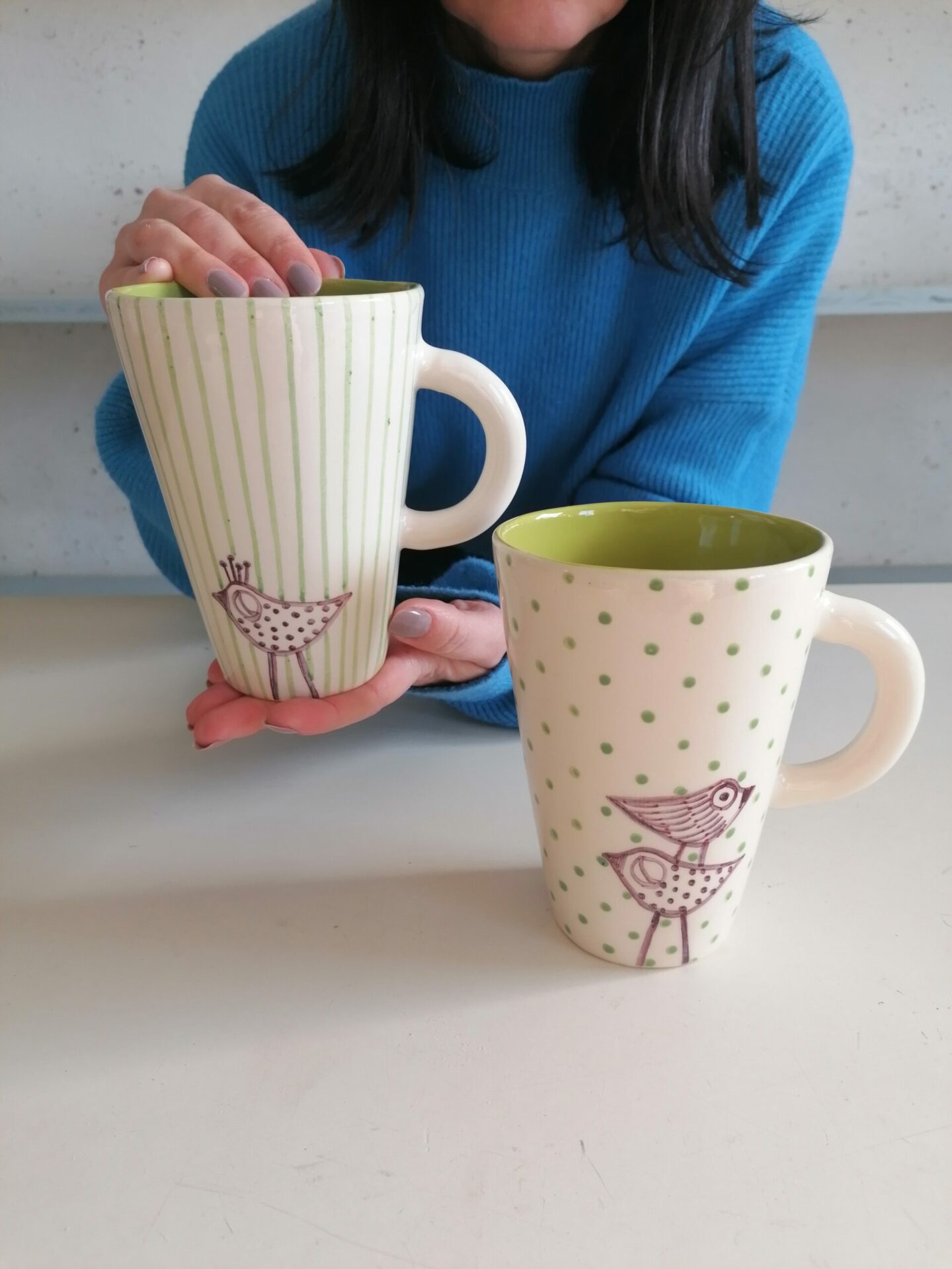 Tazza in ceramica realizzata e decorata a mano, in argilla bianca