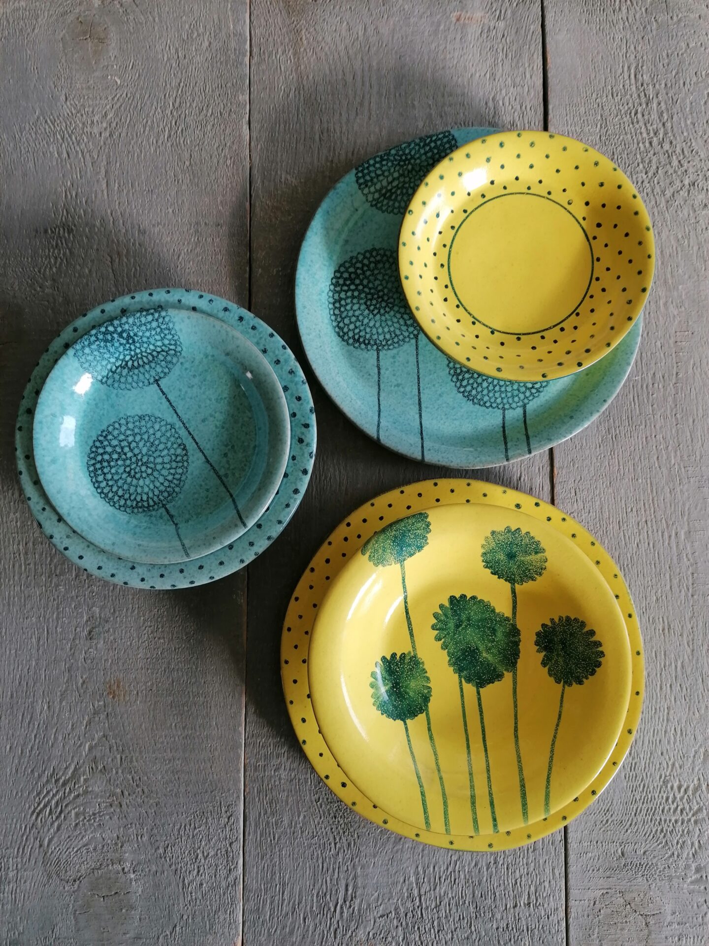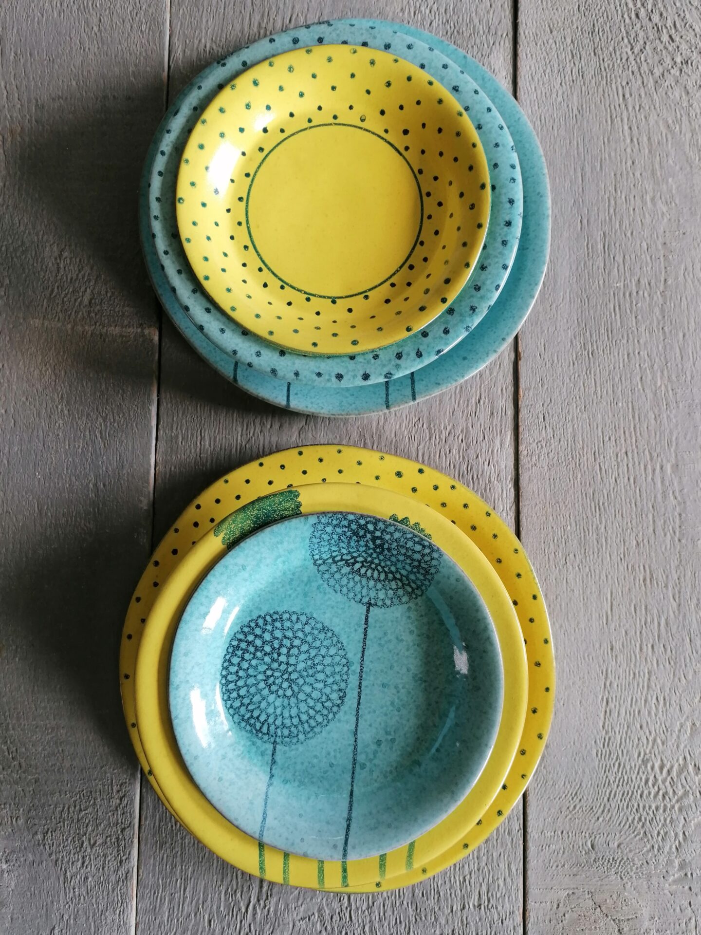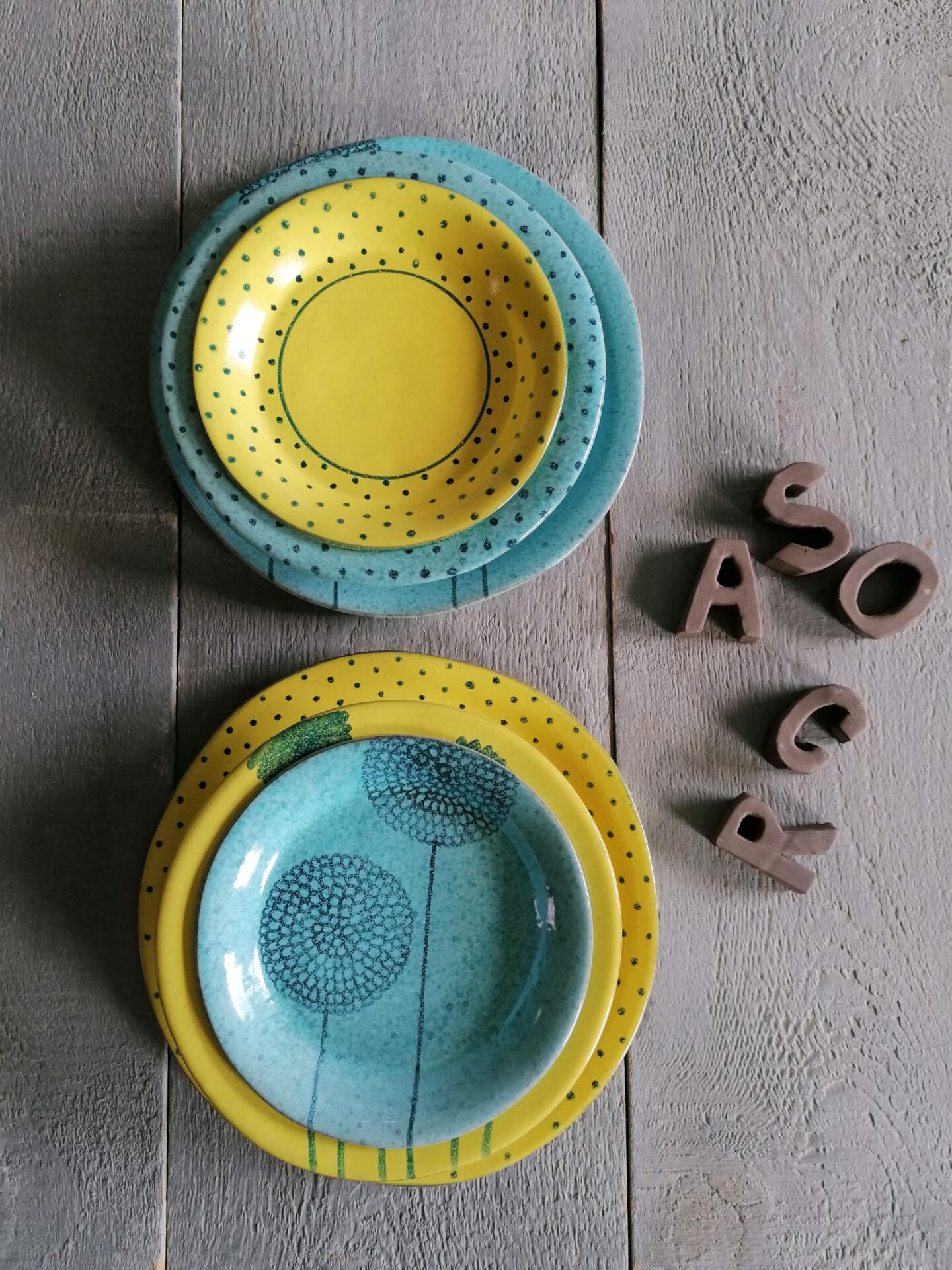 SET DA 2 PORTATE ACQUAMARINA/GIALLO piano ø27cm – fondo ø22cm – frutta ø19cm