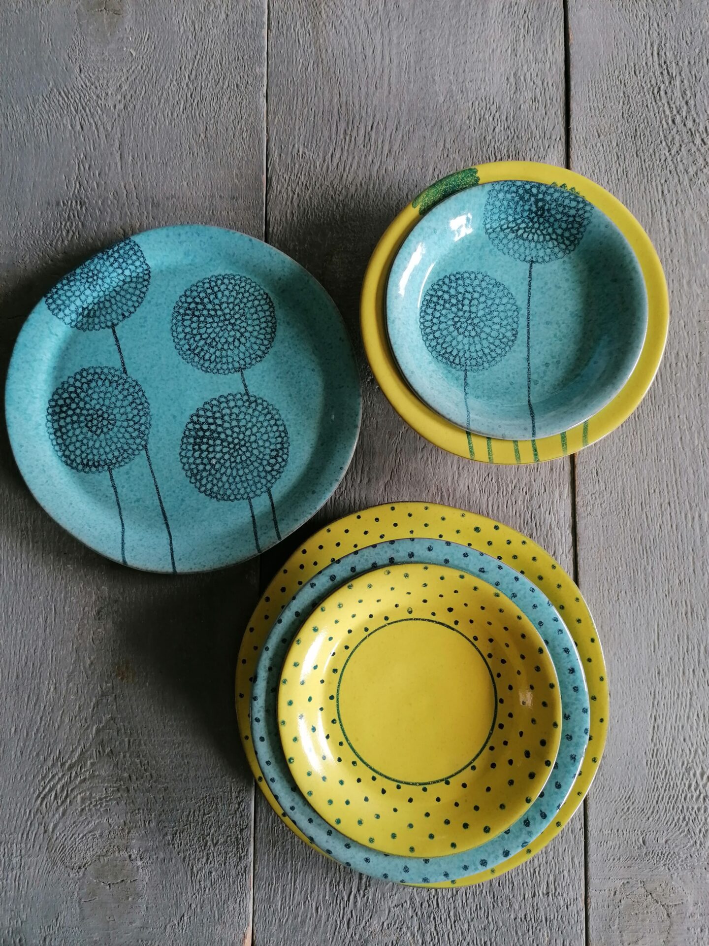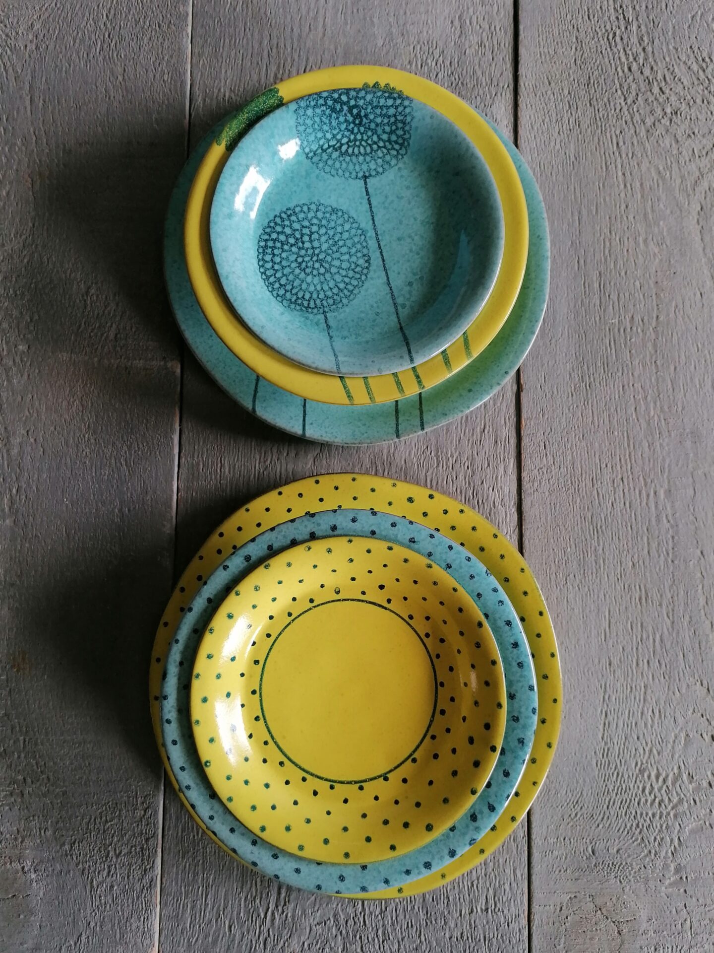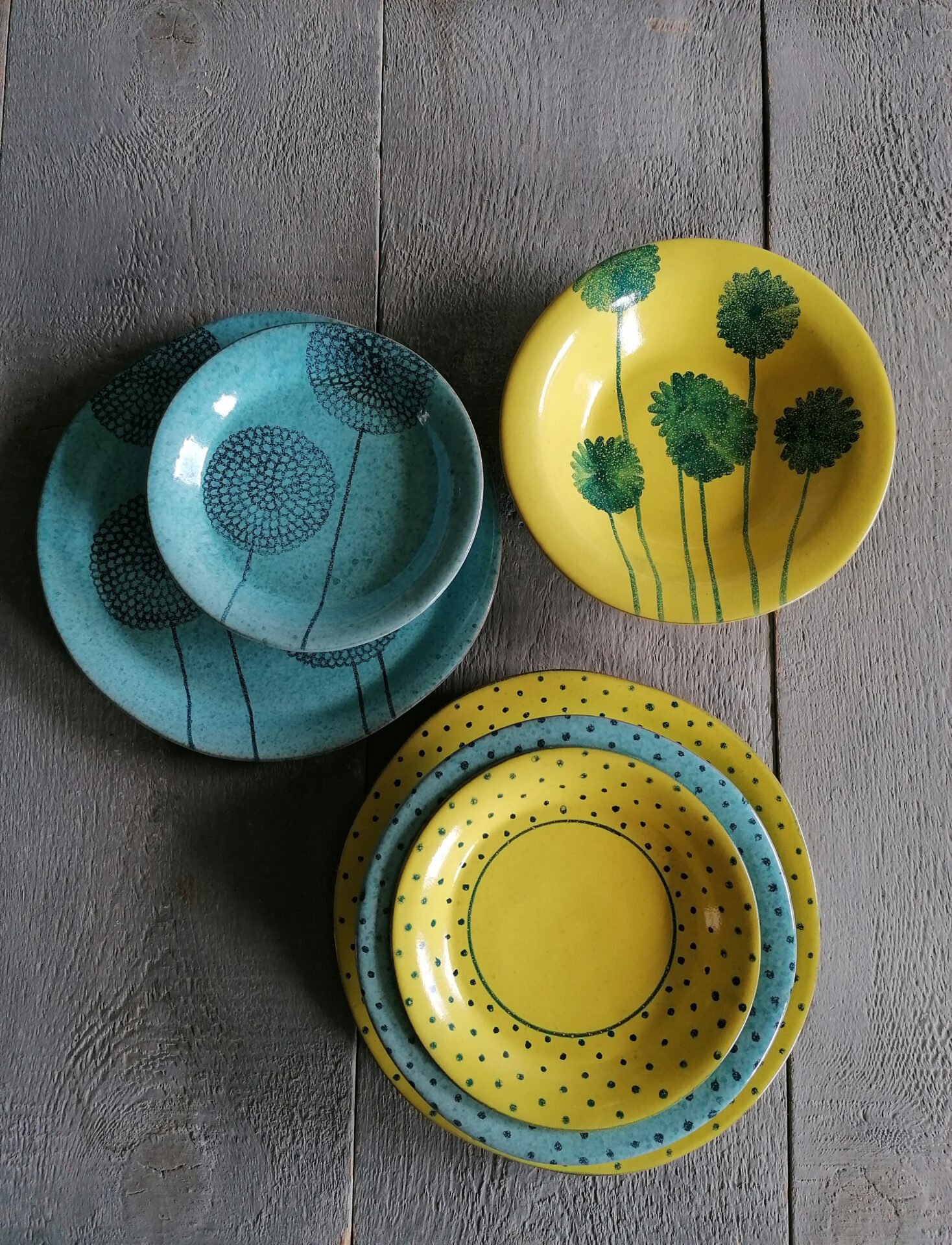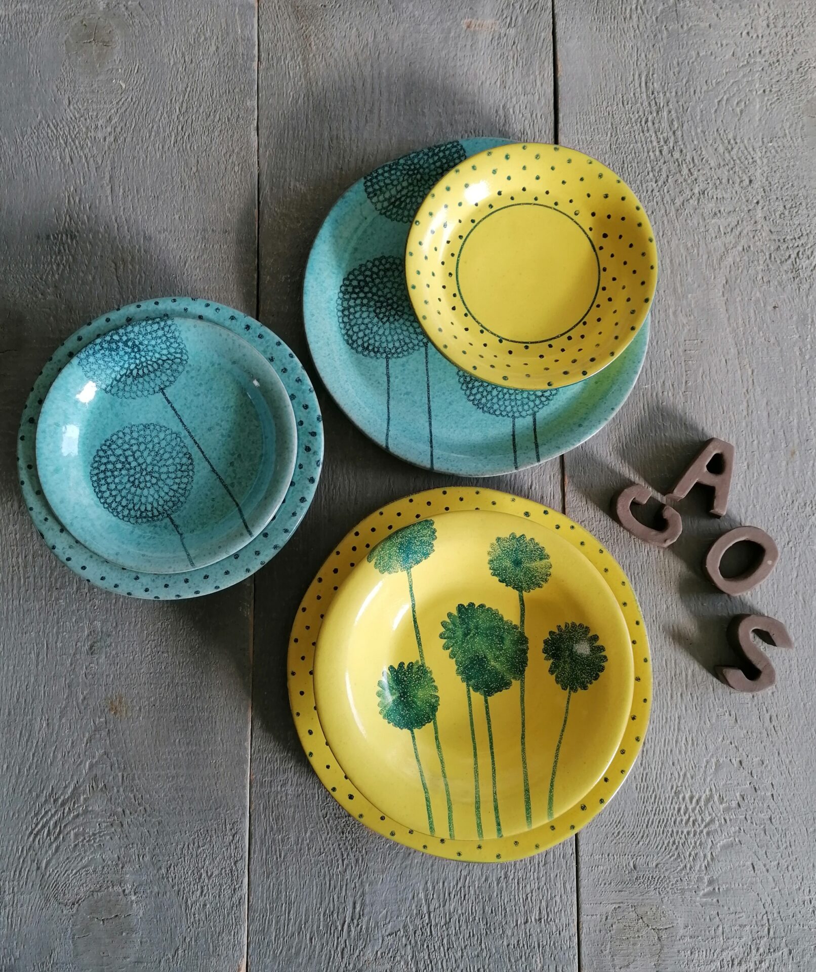 SET DA 2 PORTATE ACQUAMARINA/GIALLO piano ø27cm – fondo ø22cm – frutta ø19cm