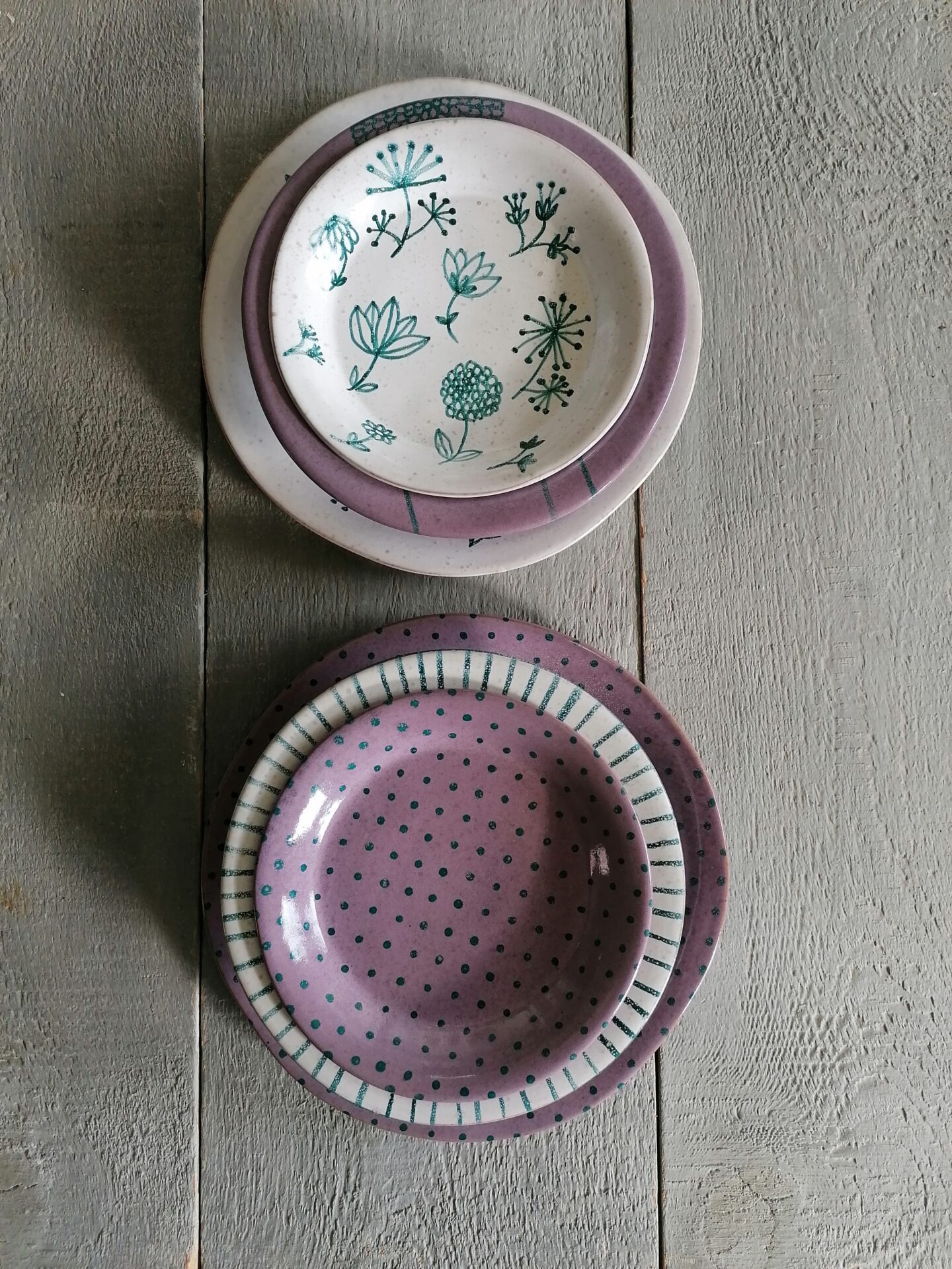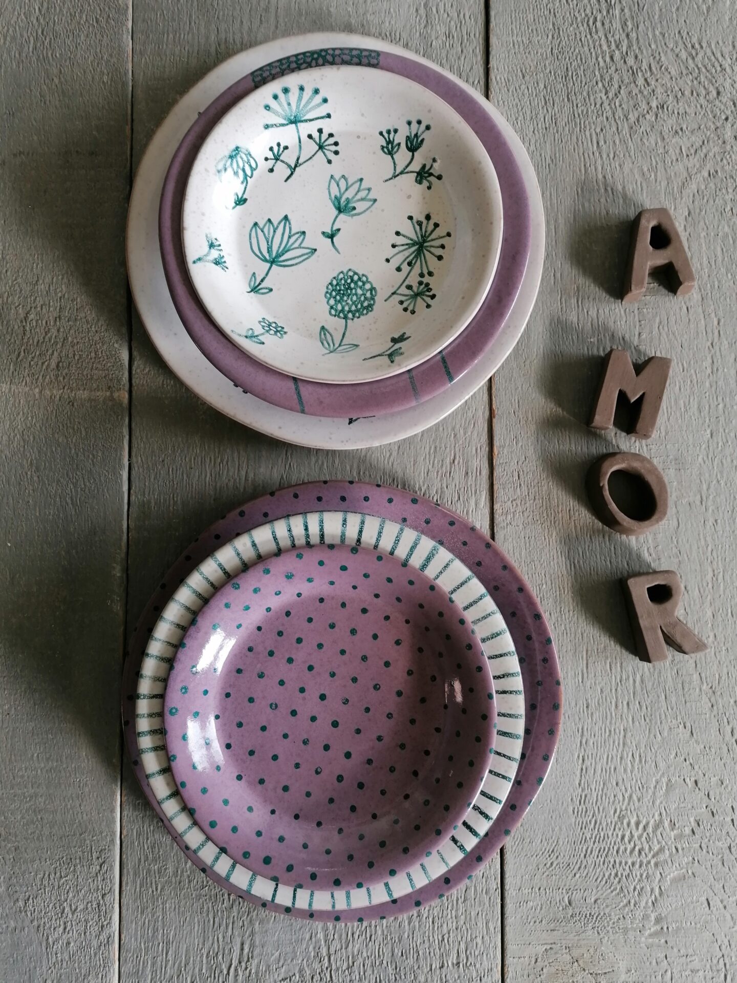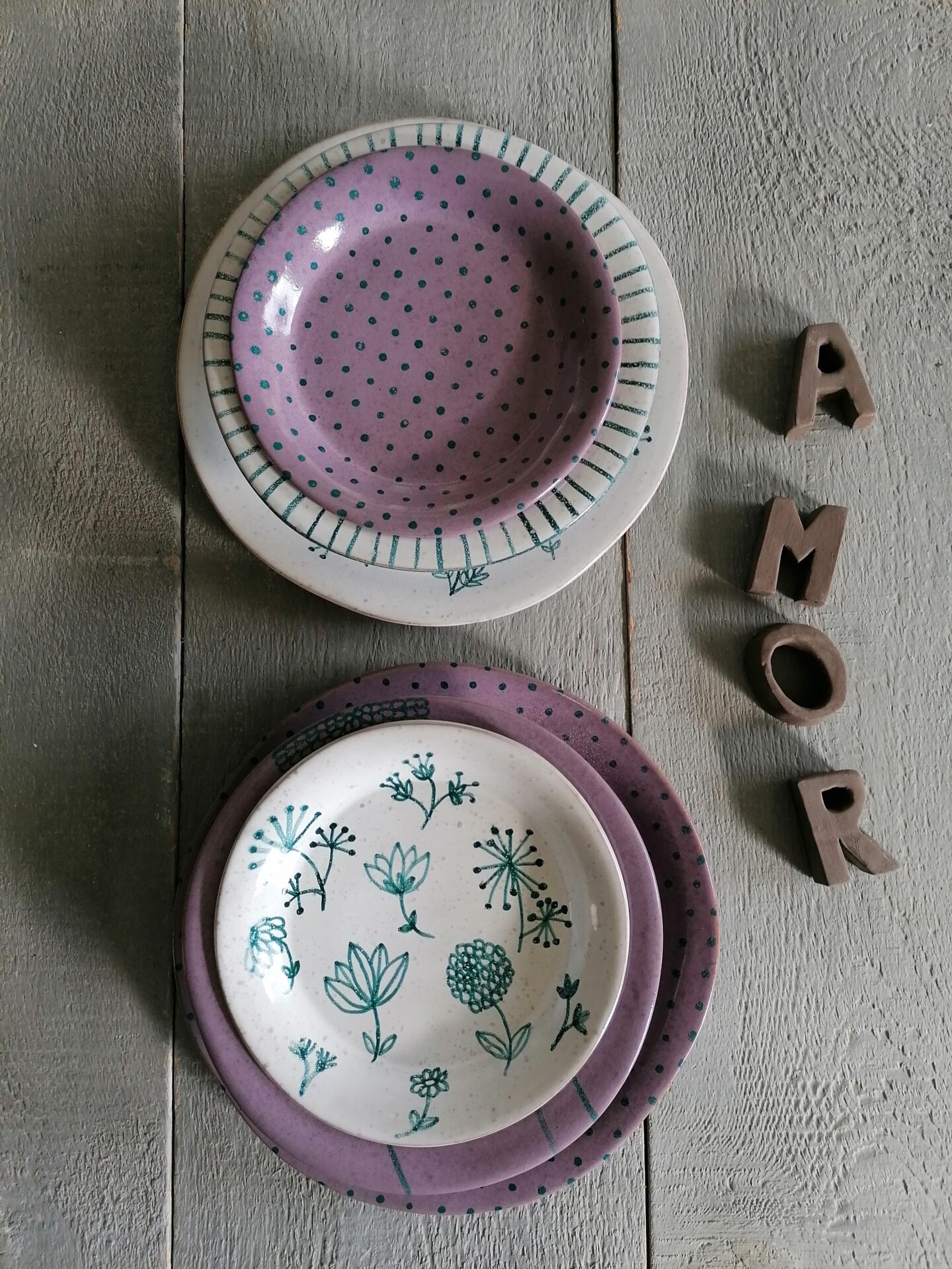 SET DA 2 PORTATE BIANCO/LILLA piano ø27cm – fondo ø22cm – frutta ø19cm