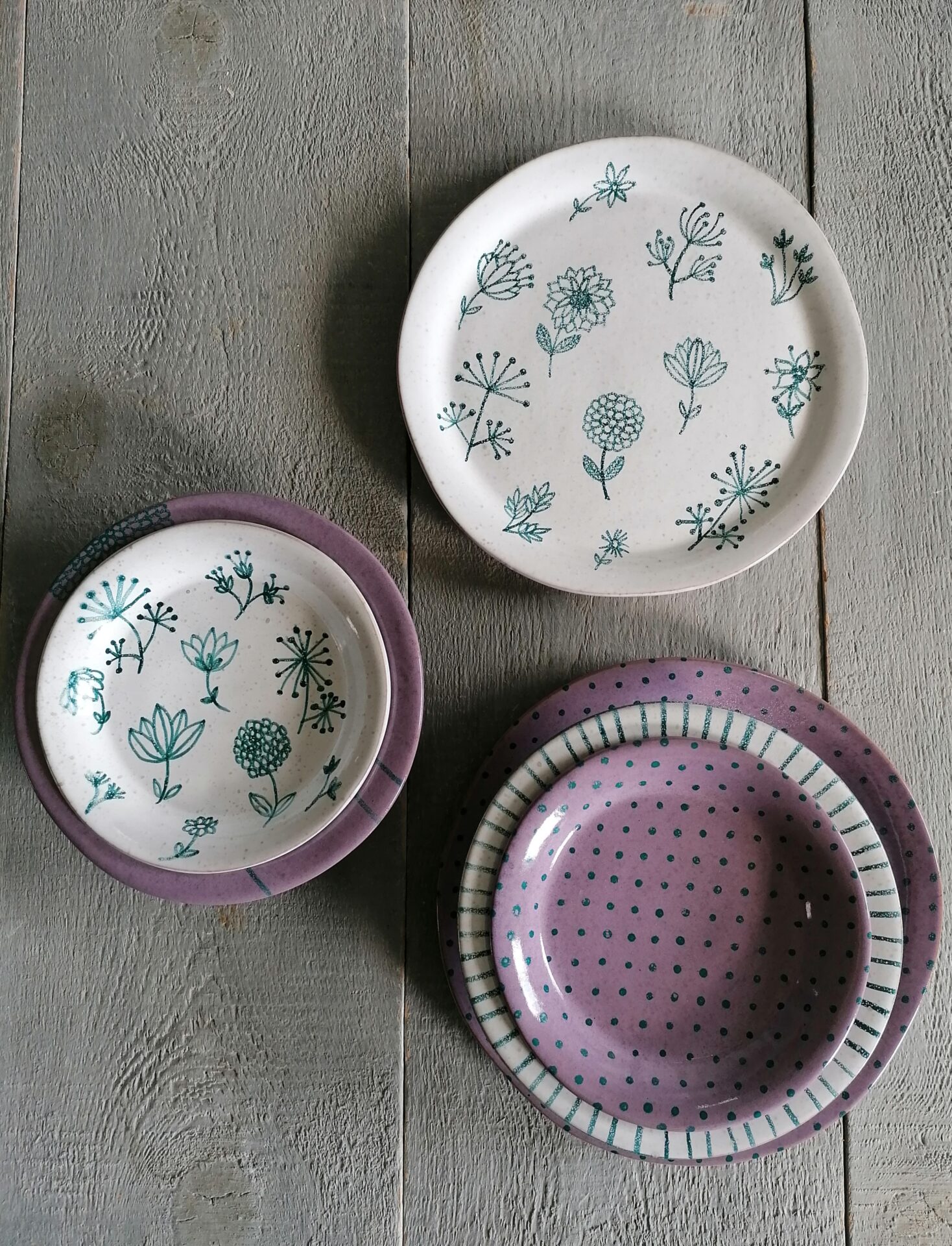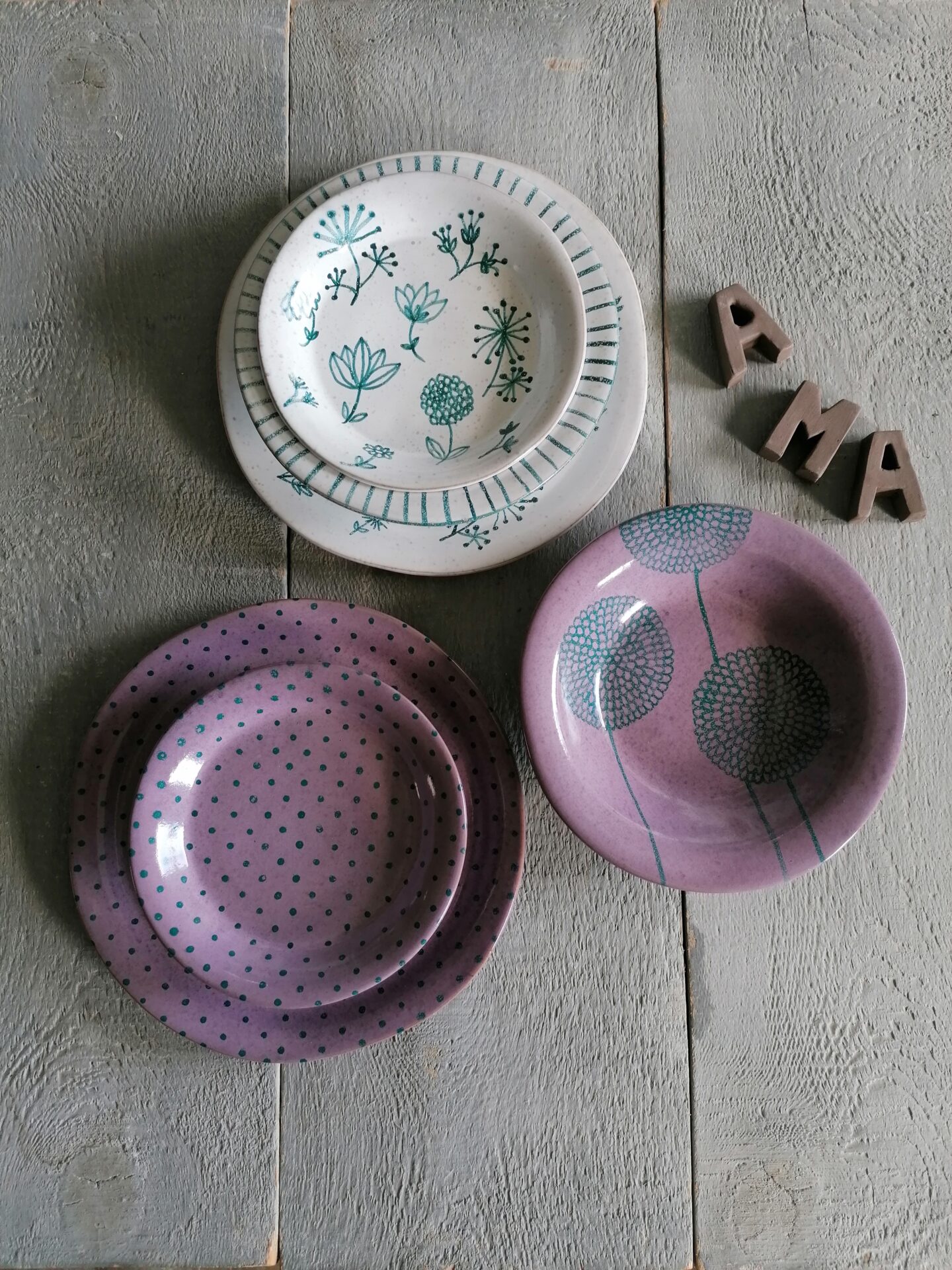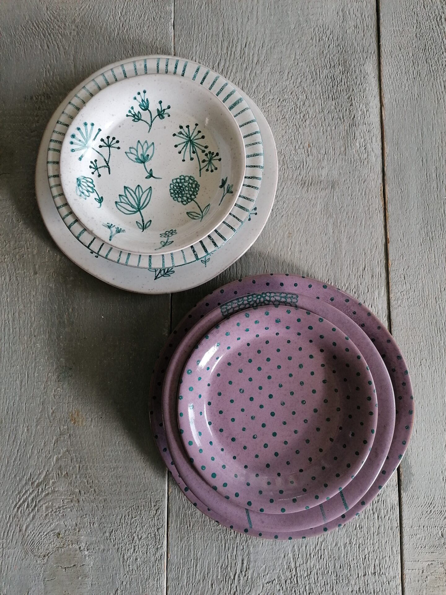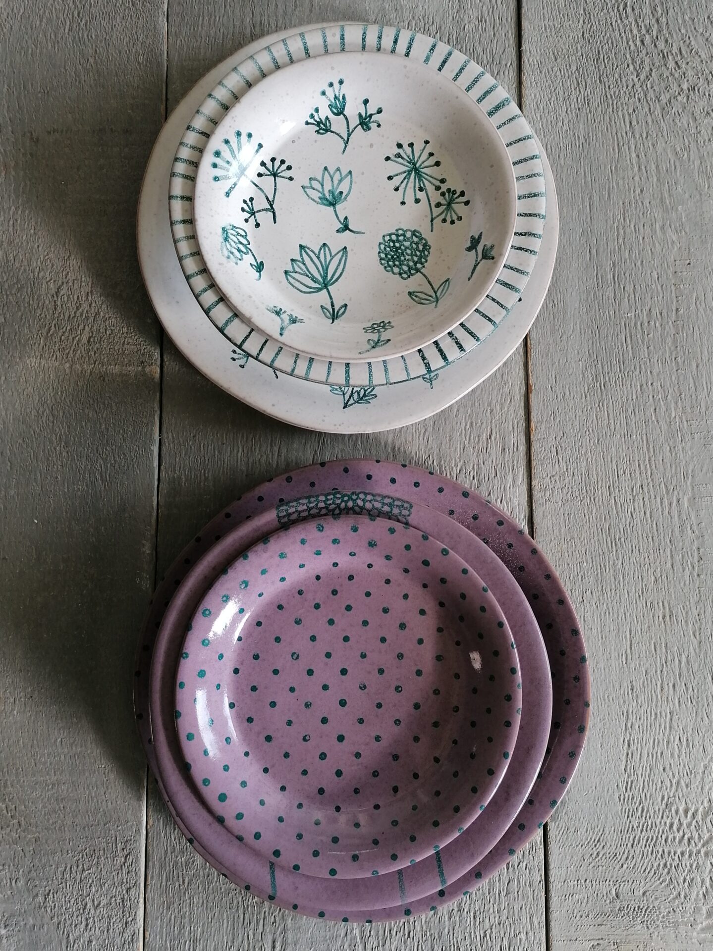 SET DA 2 PORTATE BIANCO/LILLA piano ø27cm – fondo ø22cm – frutta ø19cm