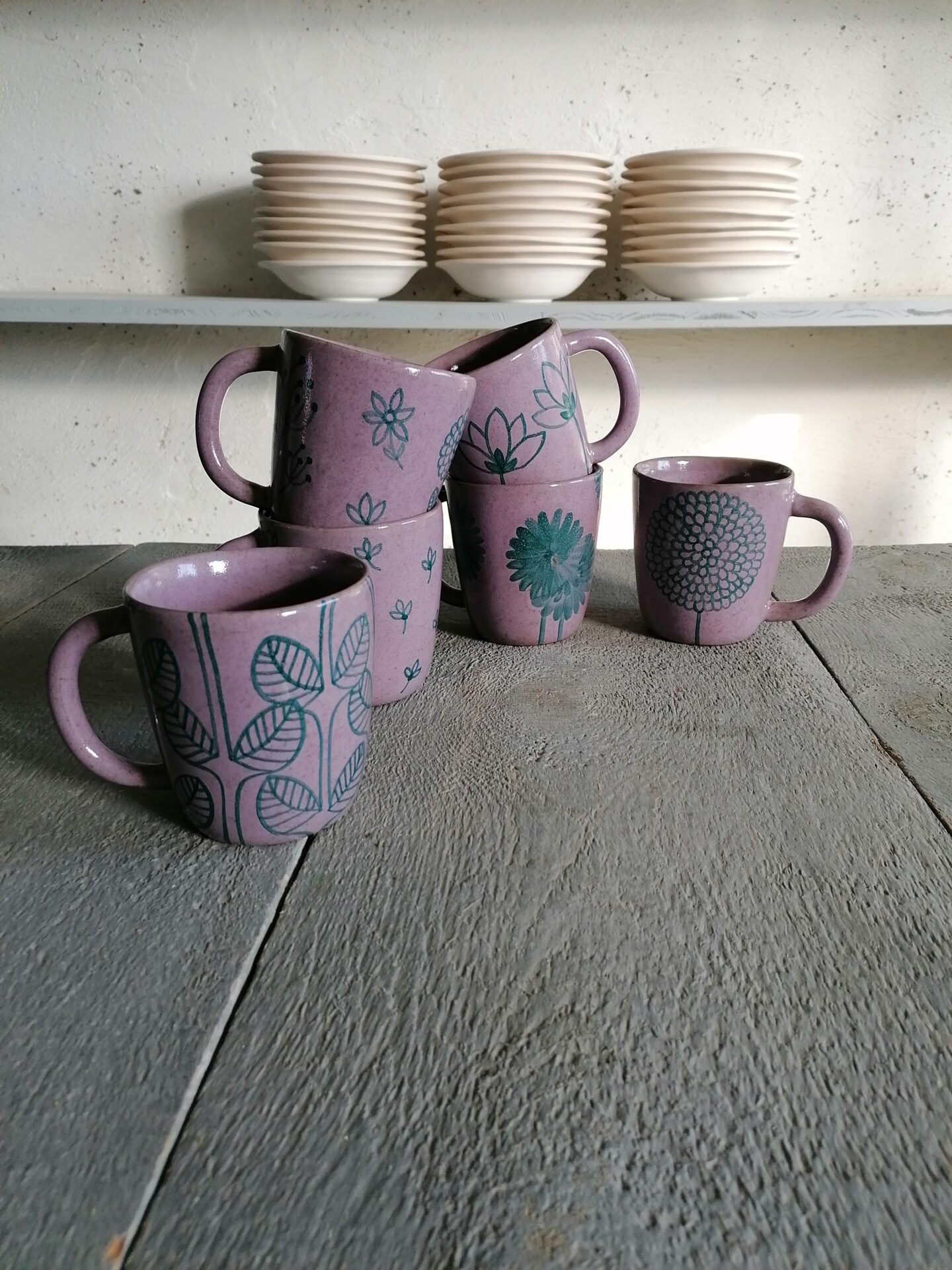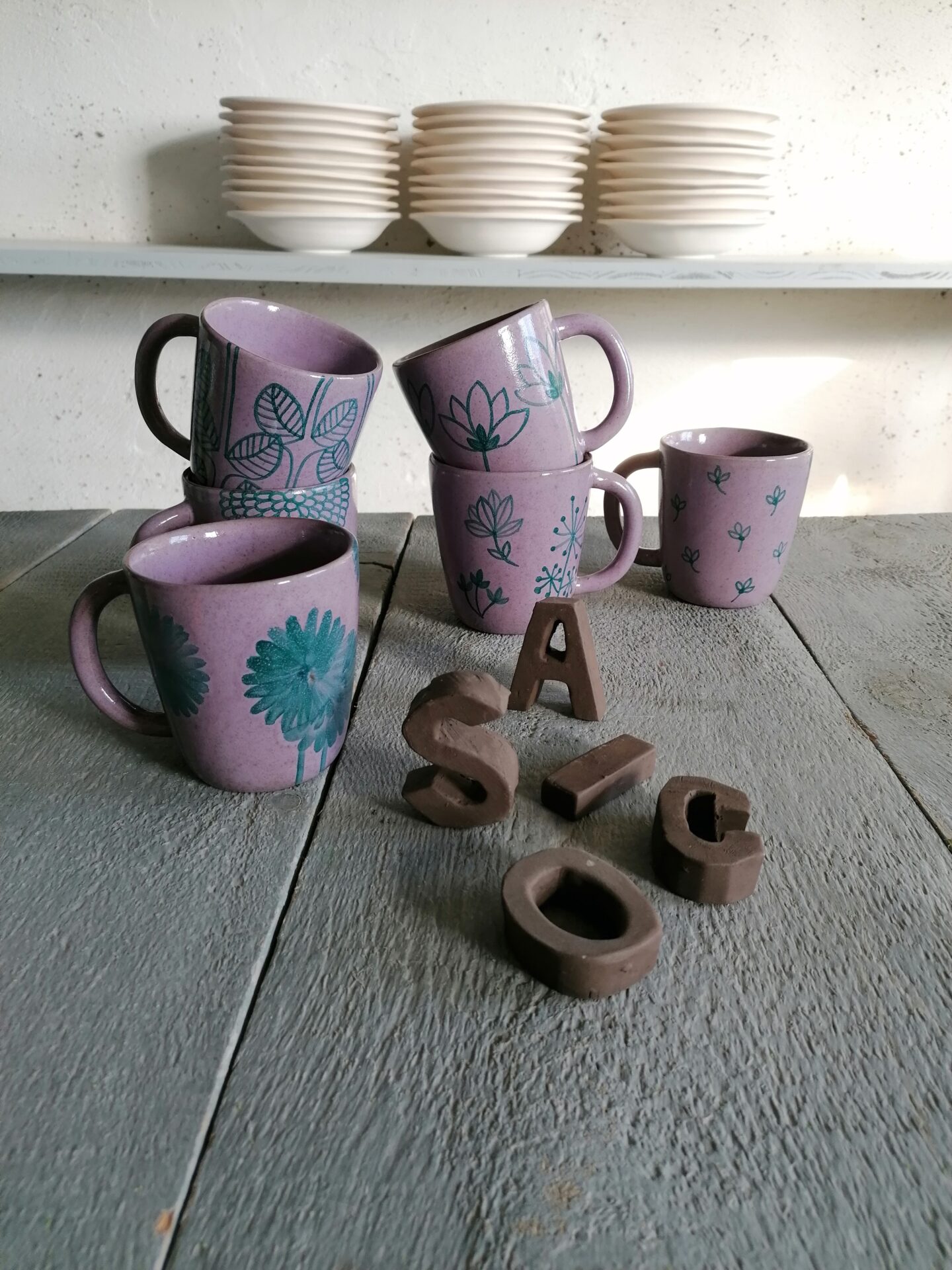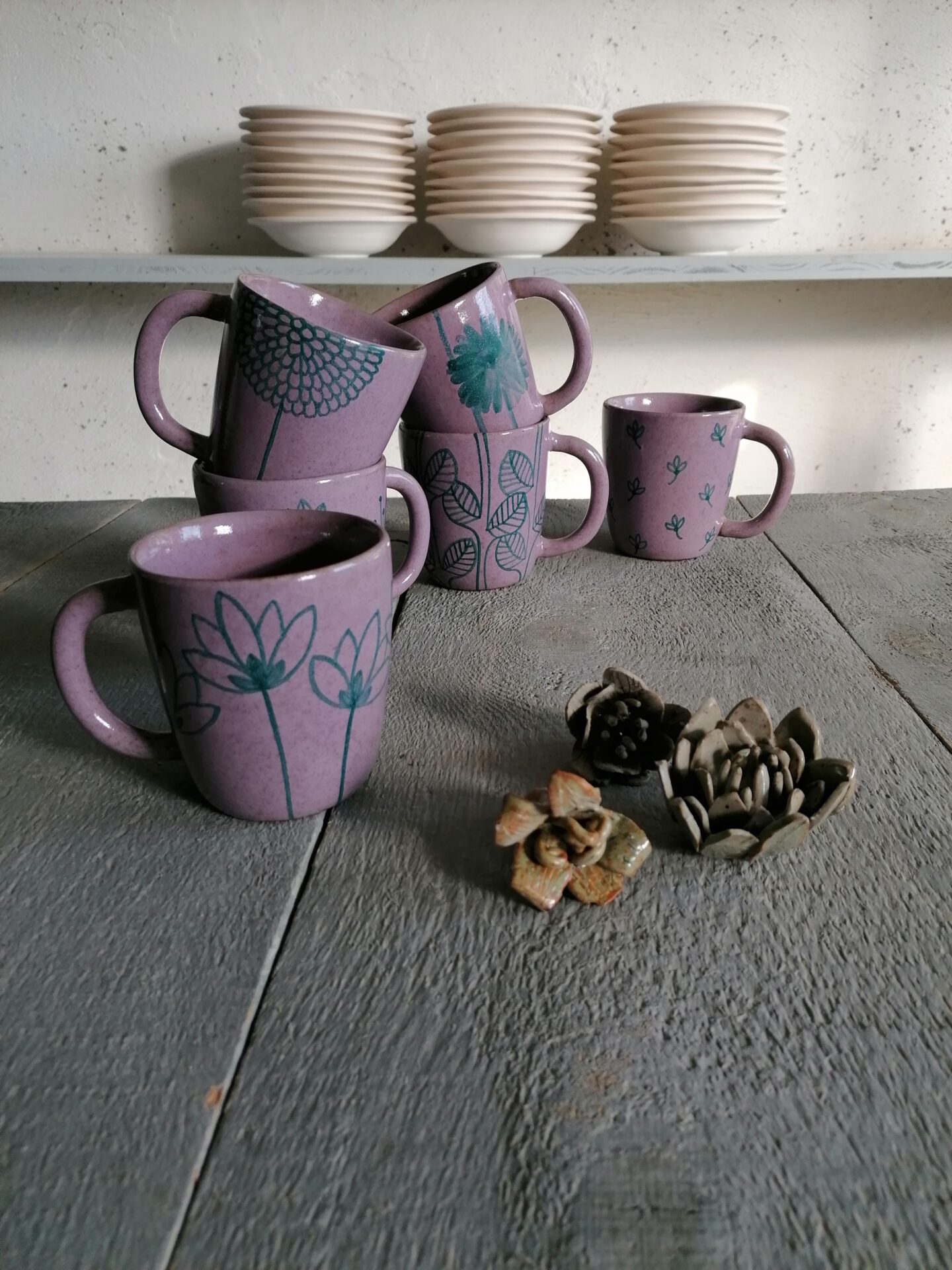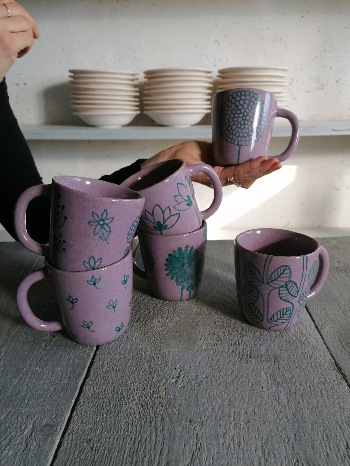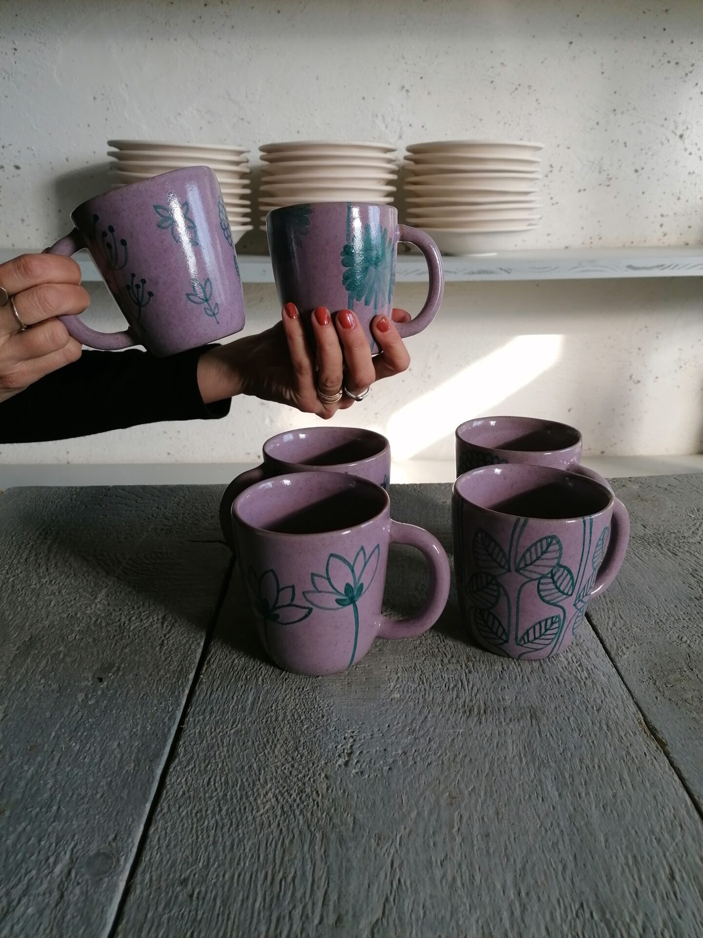 Tazza in ceramica realizzata e decorata a mano, in argilla rossa