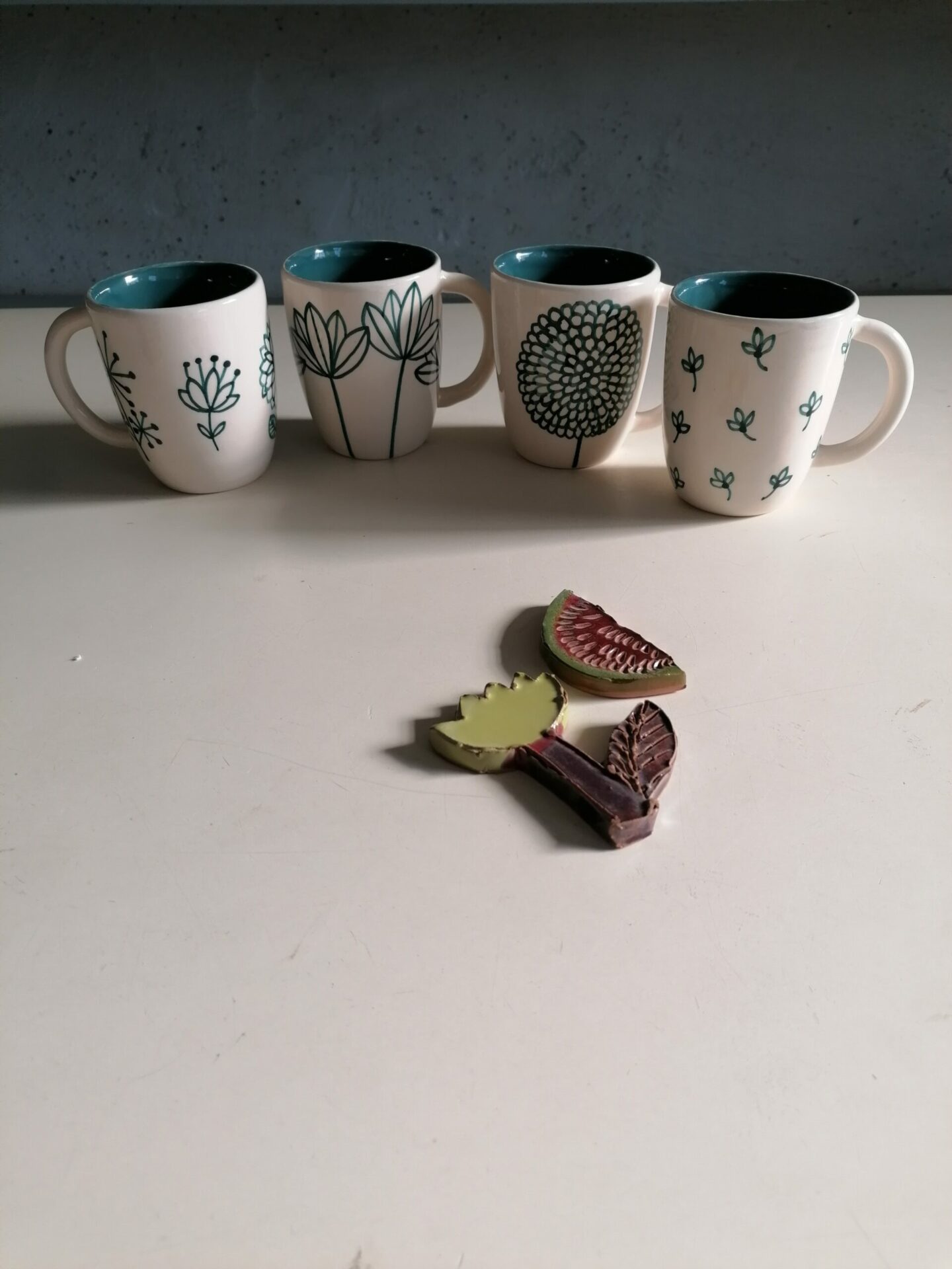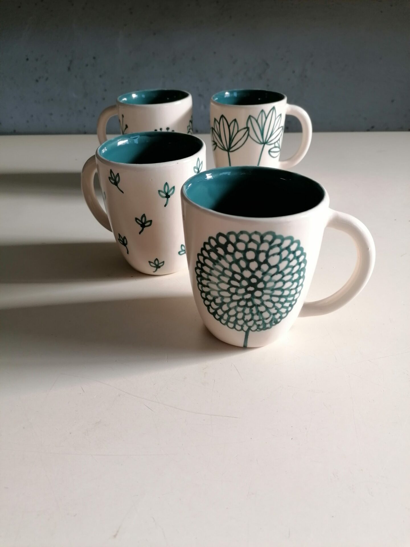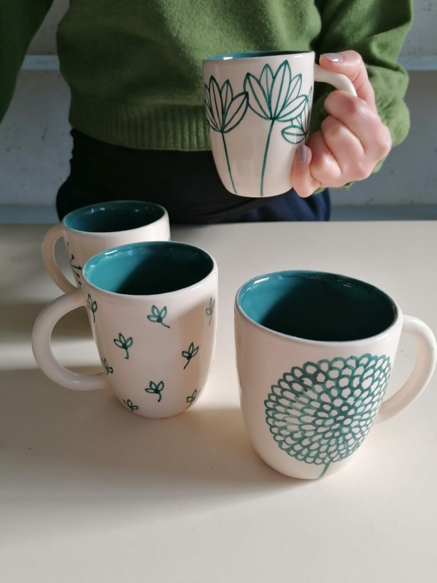 • Tazza in ceramica realizzata e decorata a mano, in argilla bianca