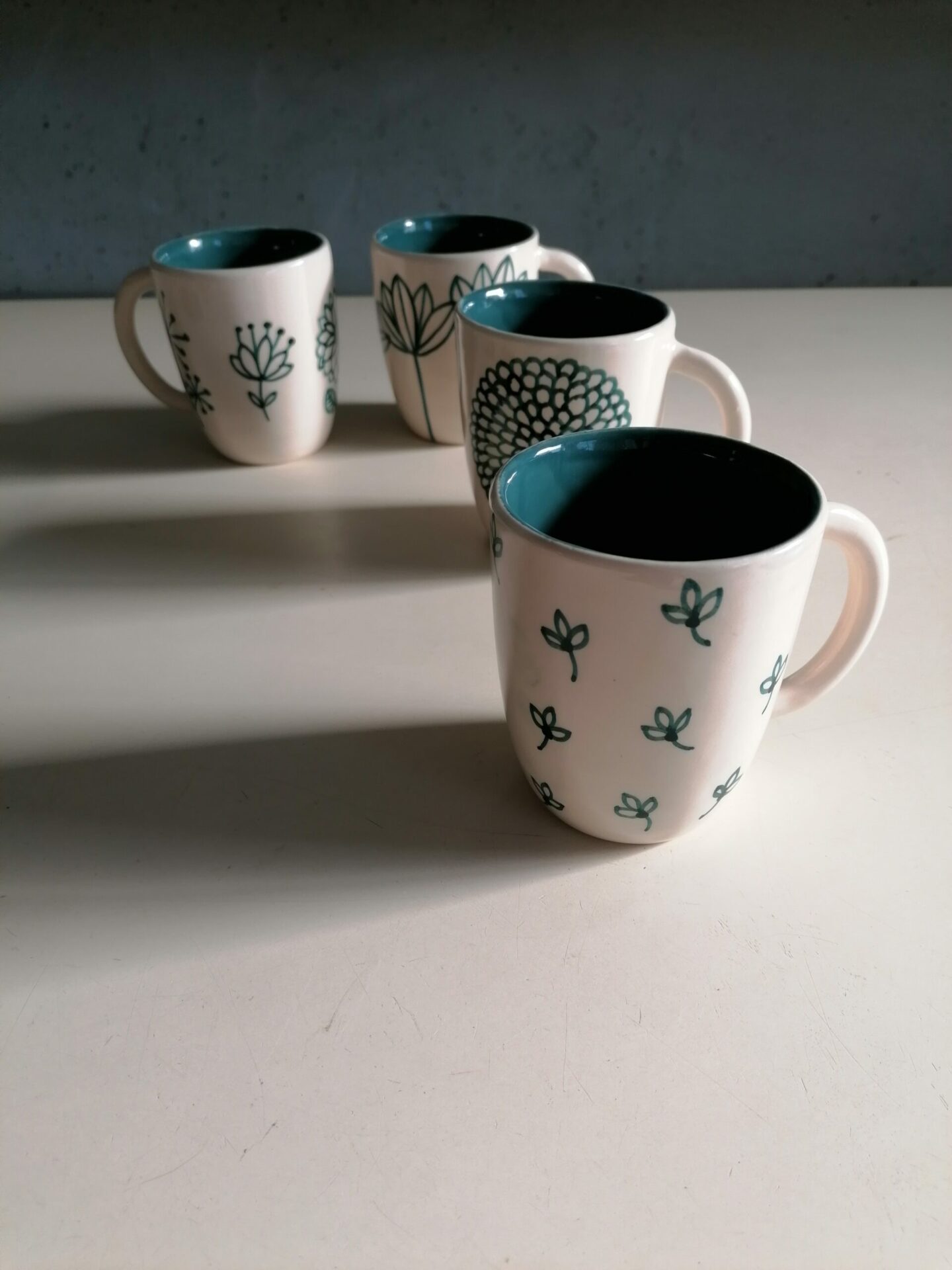 Tazza da colazione interamente prodotta e decorata a mano.