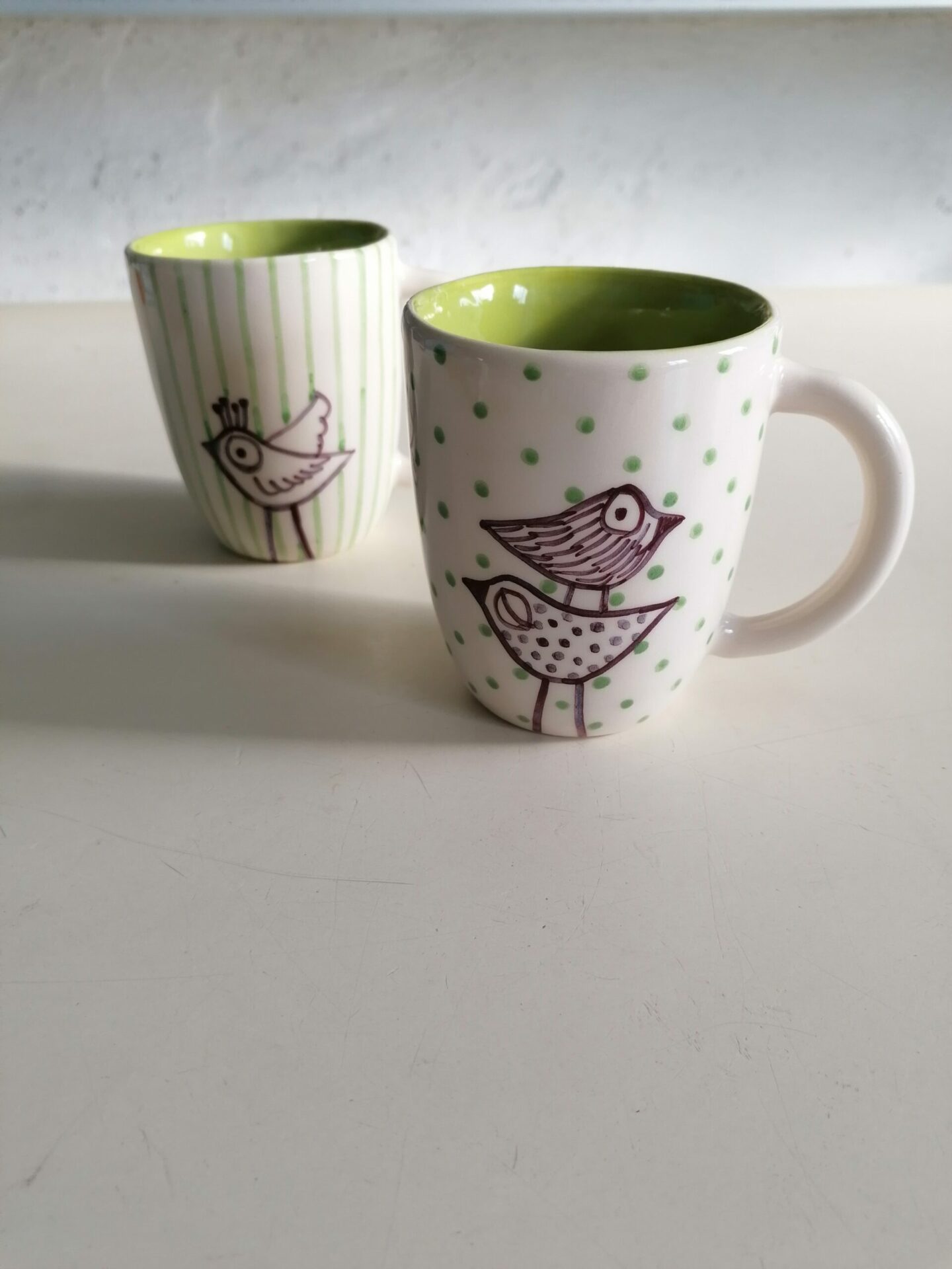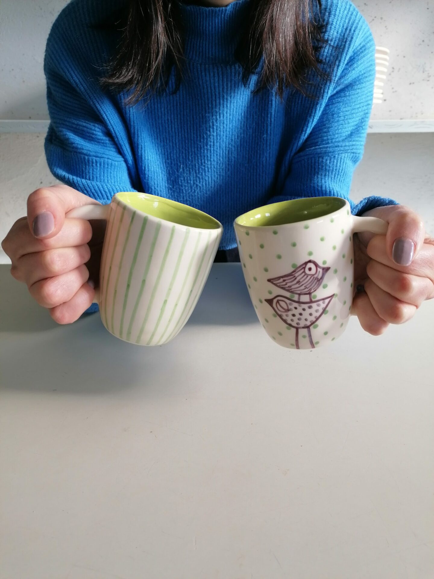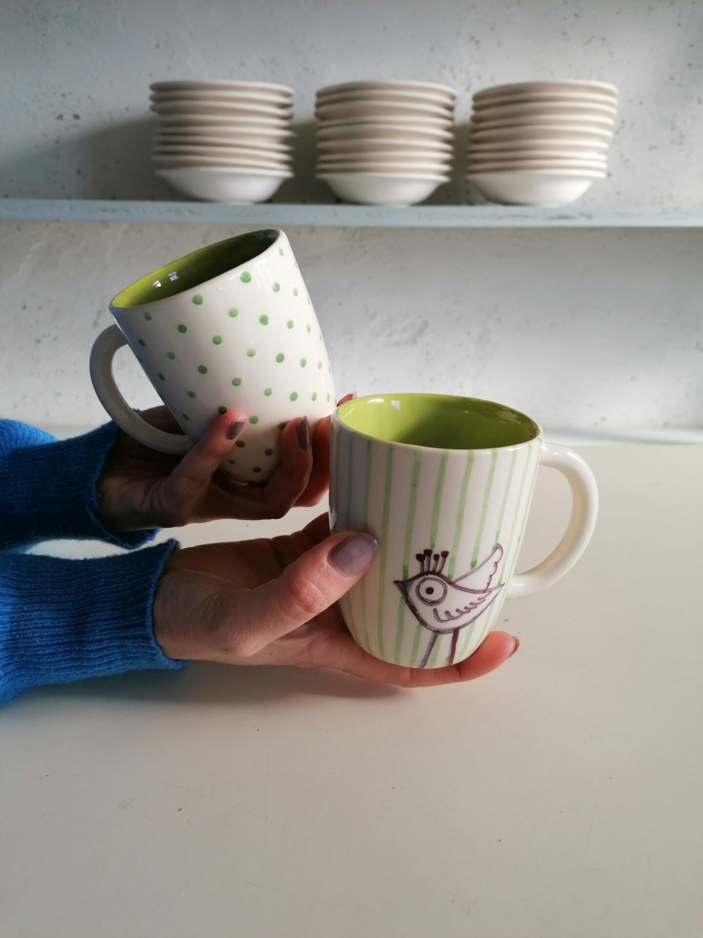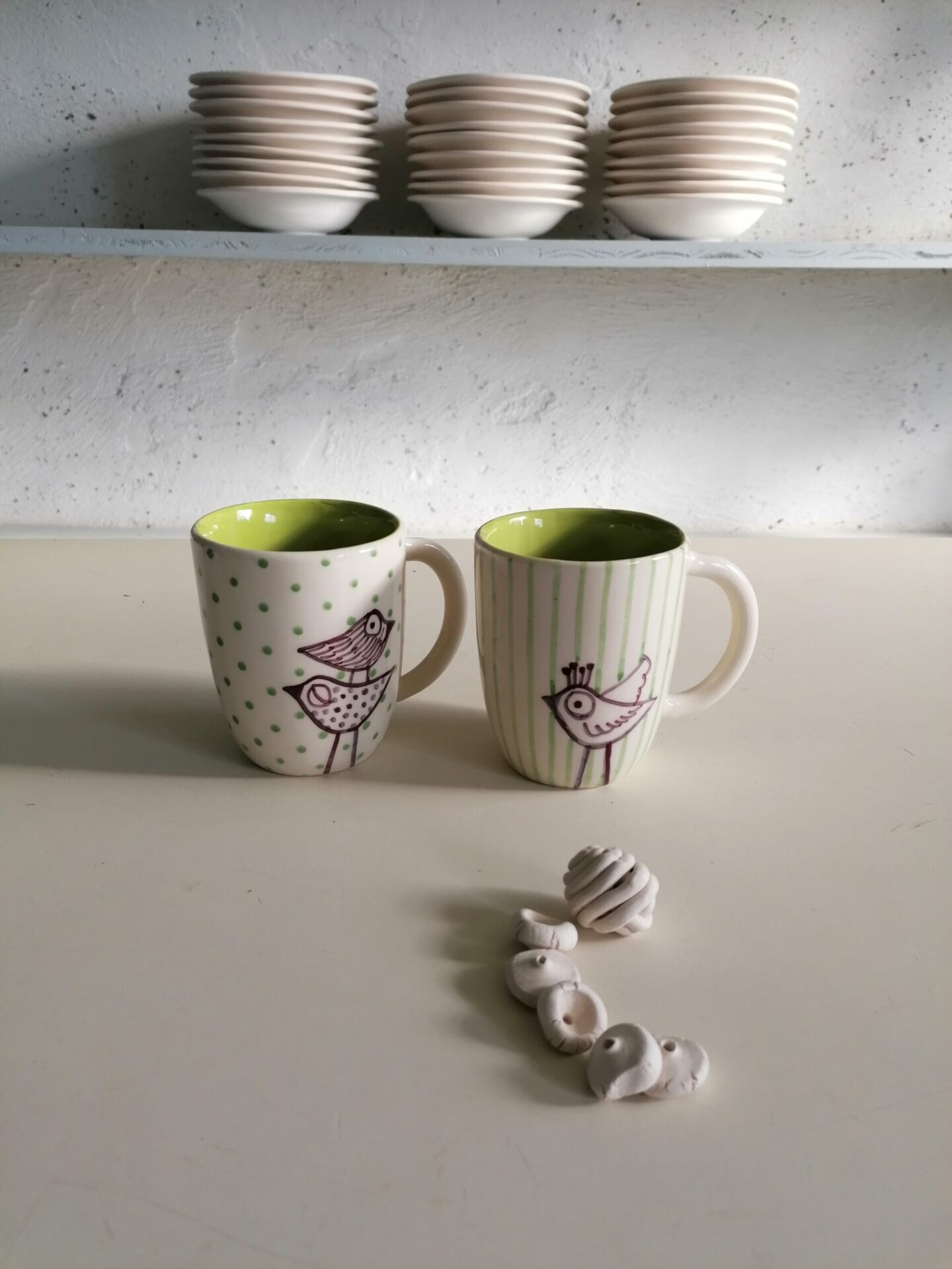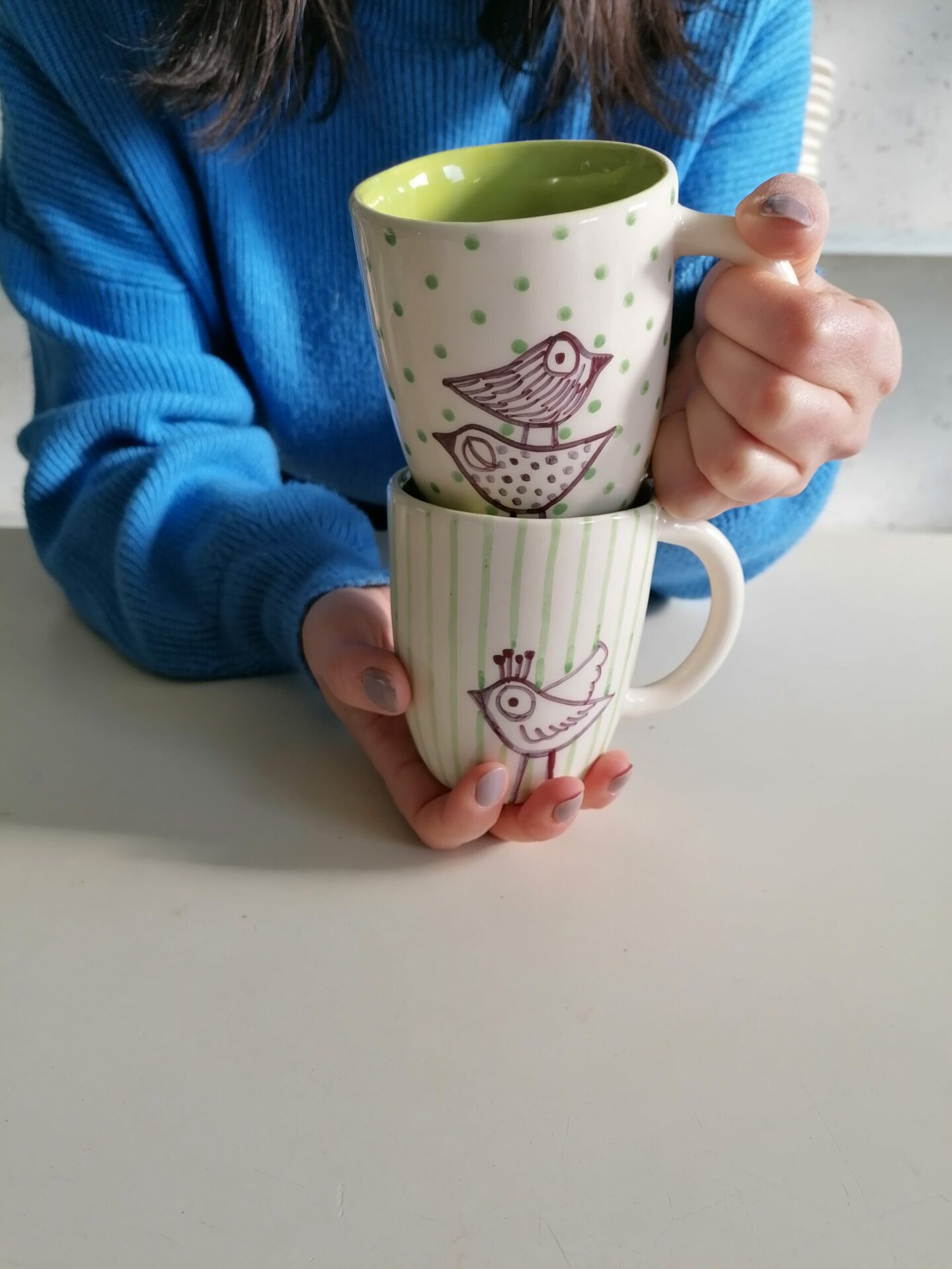 Tazza in ceramica realizzata e decorata a mano, in argilla bianca