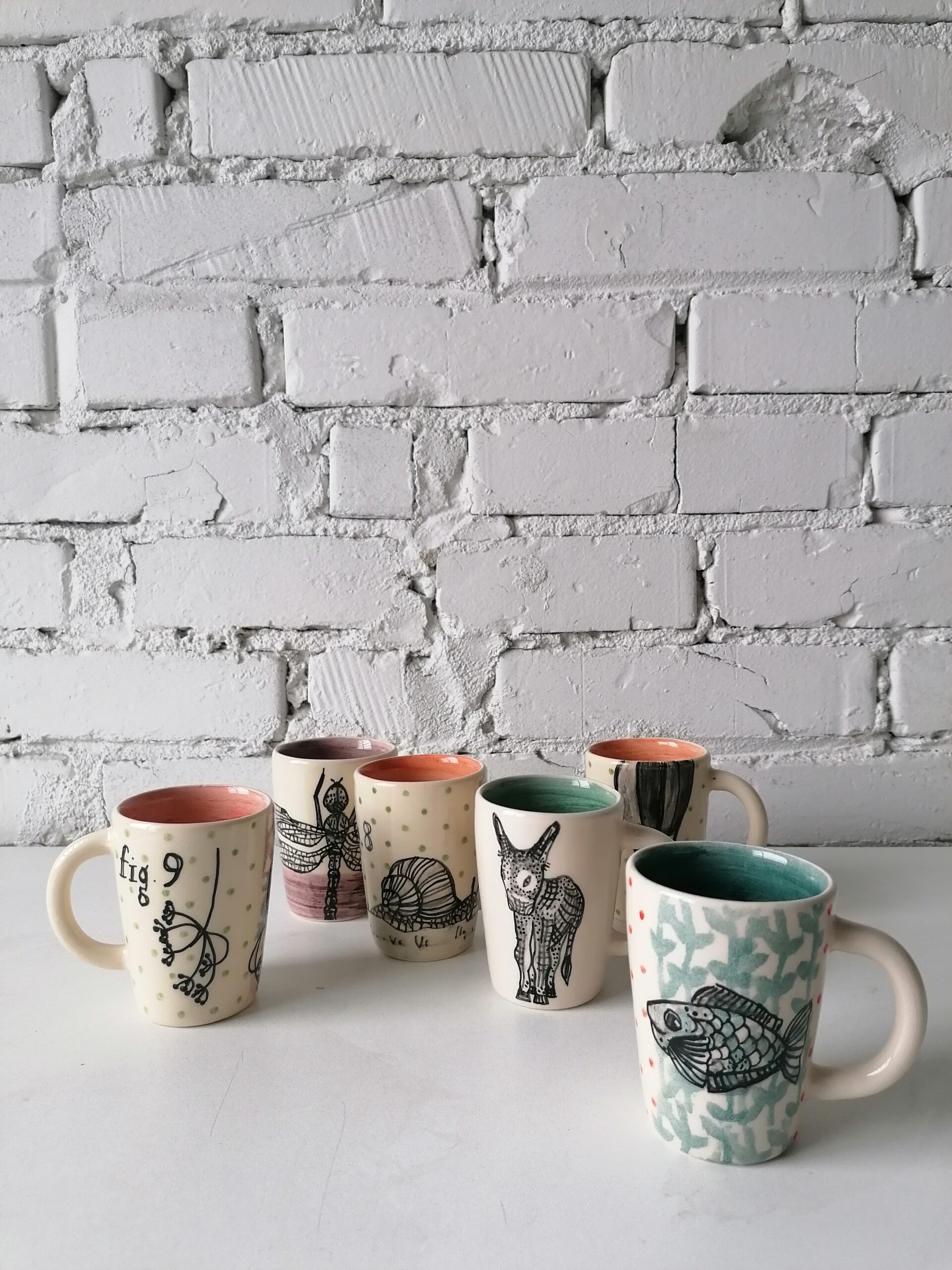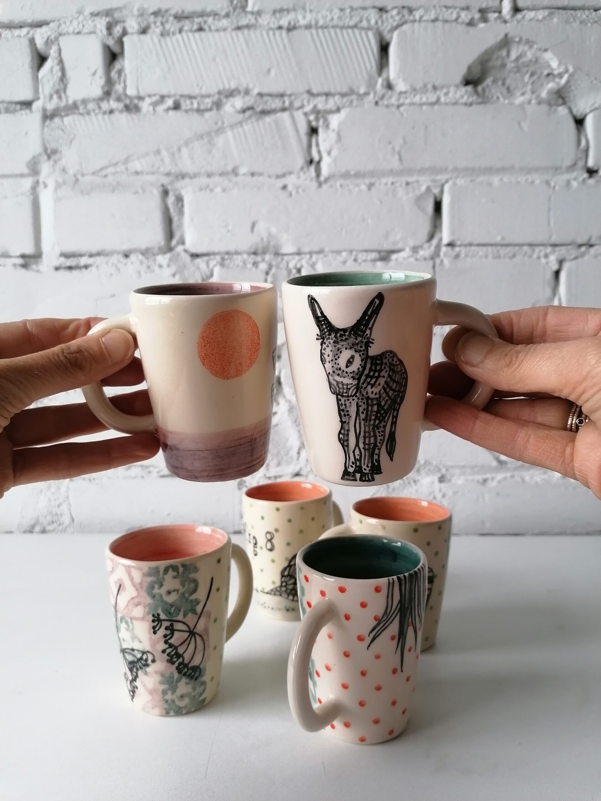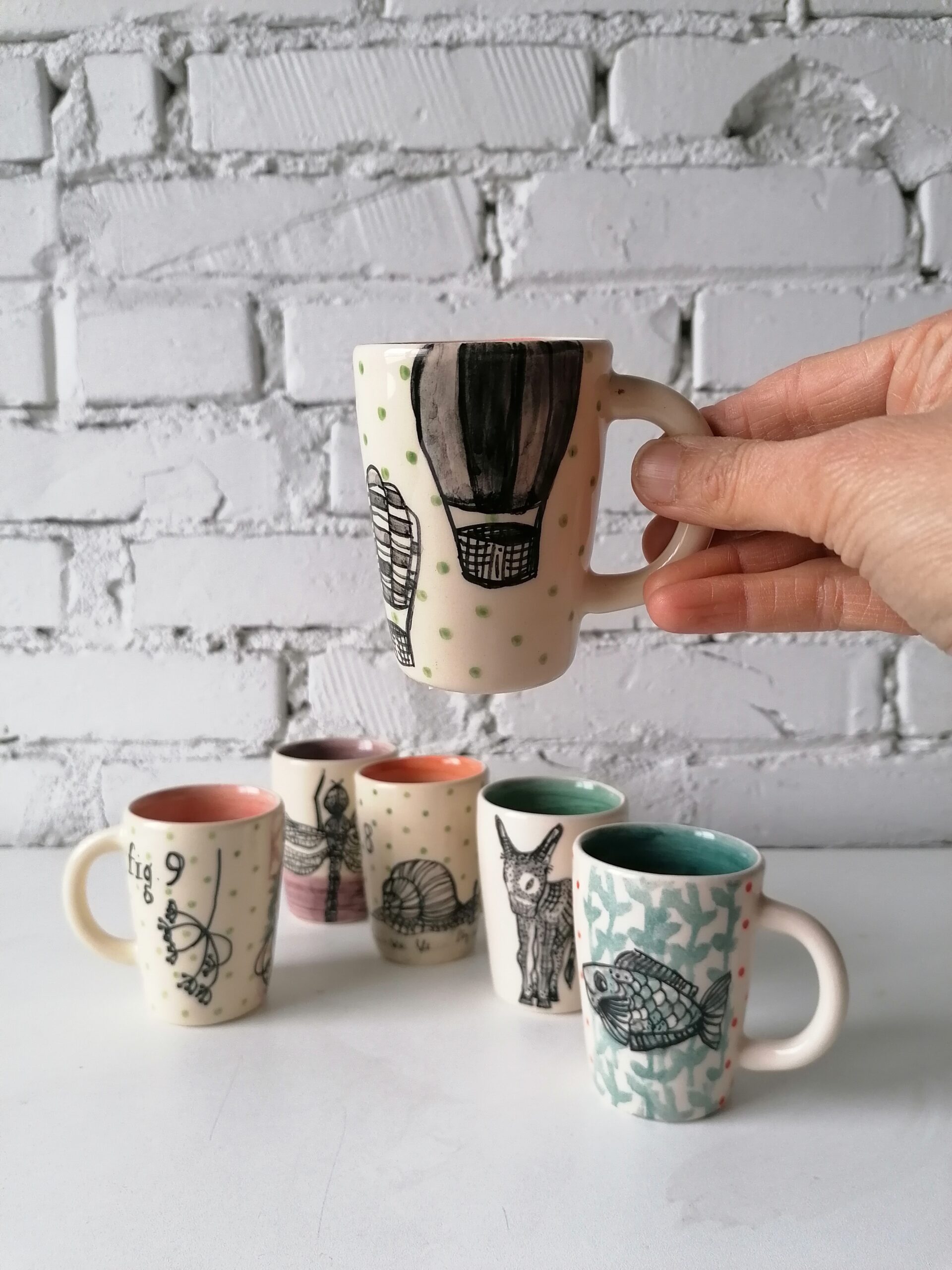 • Tazzina in ceramica realizzata e decorata a mano, in argilla bianca